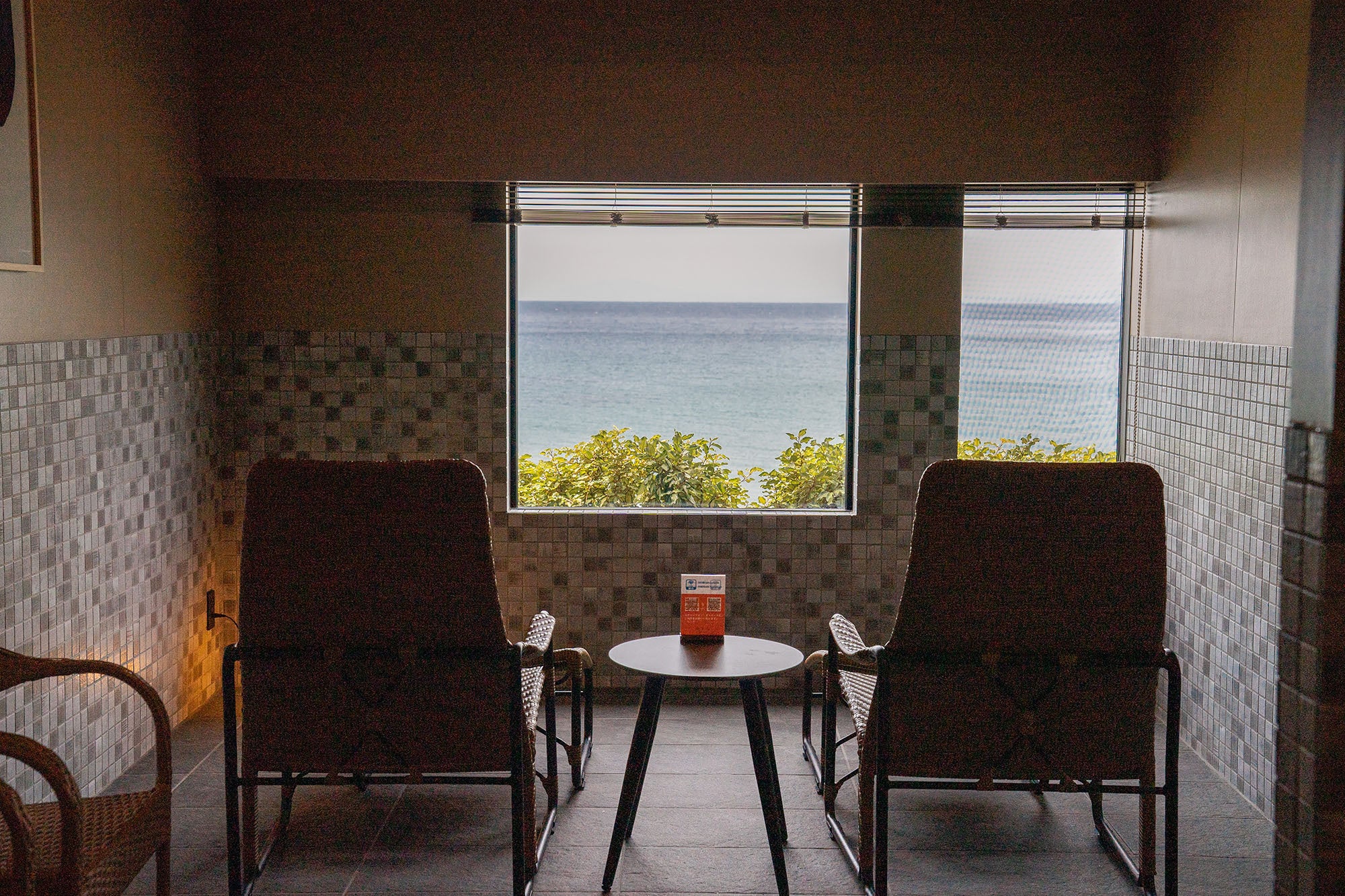 amaneからレンタサイクルで海沿いの一本道を数分走った先にある元名ビーチには、姉妹館のビーチサイド温泉リゾート「ゆうみ」と「ゆうみ Sauna Cafe」がございます。大人の至福にひたるプライベートサウナや貸切展望露天風呂でのひとときも、特別な想い出のひとときに。