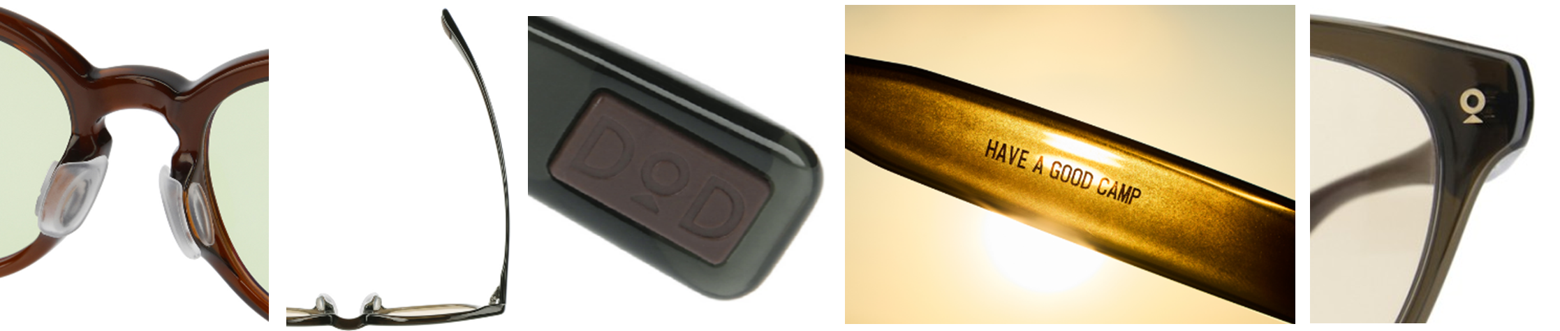 ギアの出し入れや、テントの設営など動き回るシーンを想定し、フィット感抜群のシリコンの鼻パッドや、顔を抱き込むカーブ設計を採用。耳にかかるテンプル(つる)先端の「DODロゴ」はラバー素材で滑り止めの役割も。軽くてしなやかなTR樹脂を採用したフレームで長時間の着用も快適です。「HAVE A GOOD CAMP」という”キャンプを楽しんで欲しい”という想いを込めたメッセージや、フロントサイドの「(DODロゴの)O」は、ウサグラサンならではのワンポイント!