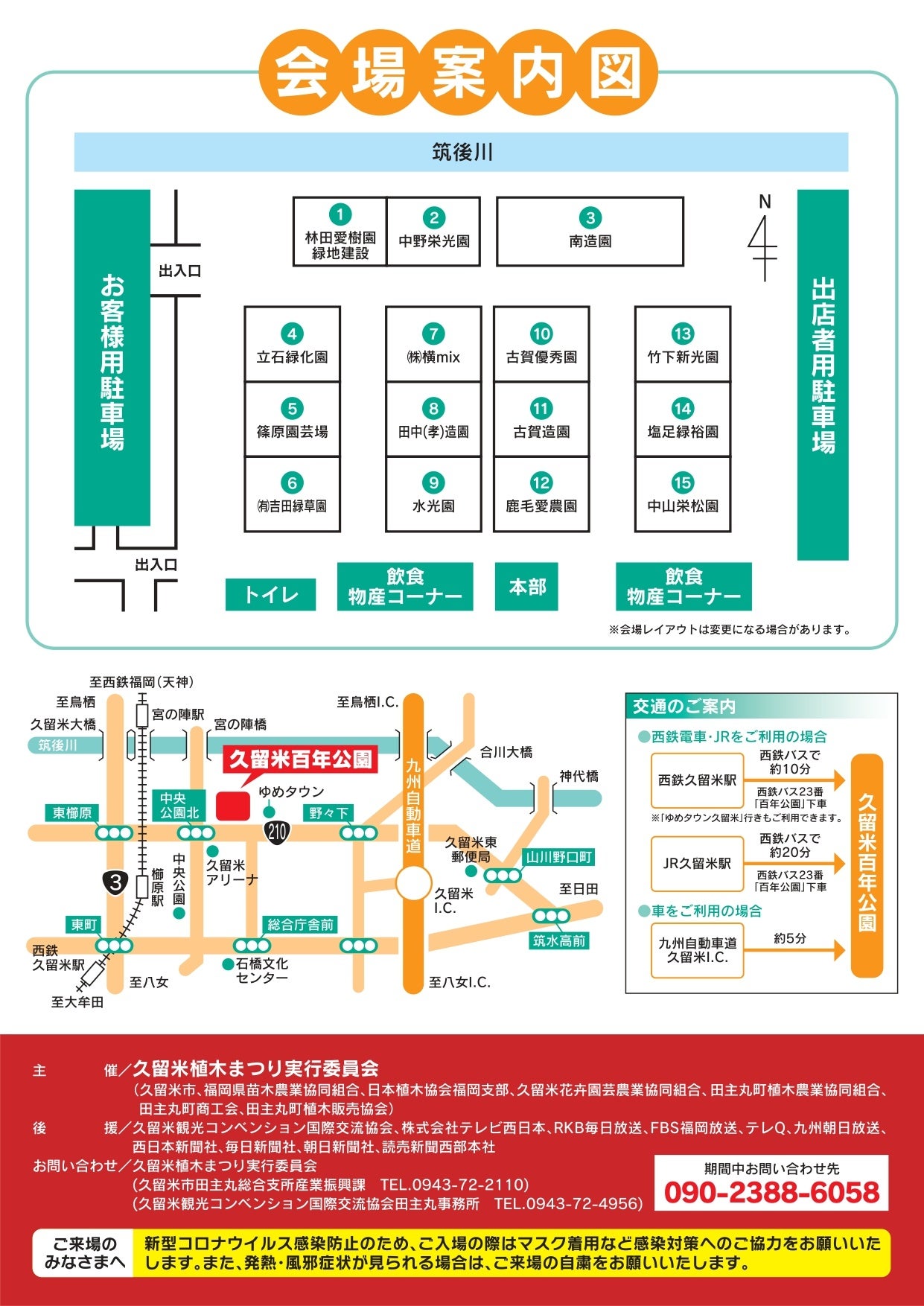 田主丸町は日本有数の植木・苗木の生産地です。その魅力を広くPRし、市の緑化産業の振興につなげることを目的としています。会場では100種10万本の植木・苗木を展示即売し、恒例の植木せり市やこけ玉づくり体験など植木や苗木の魅力を存分に楽しんでいただけるイベントもあります。
