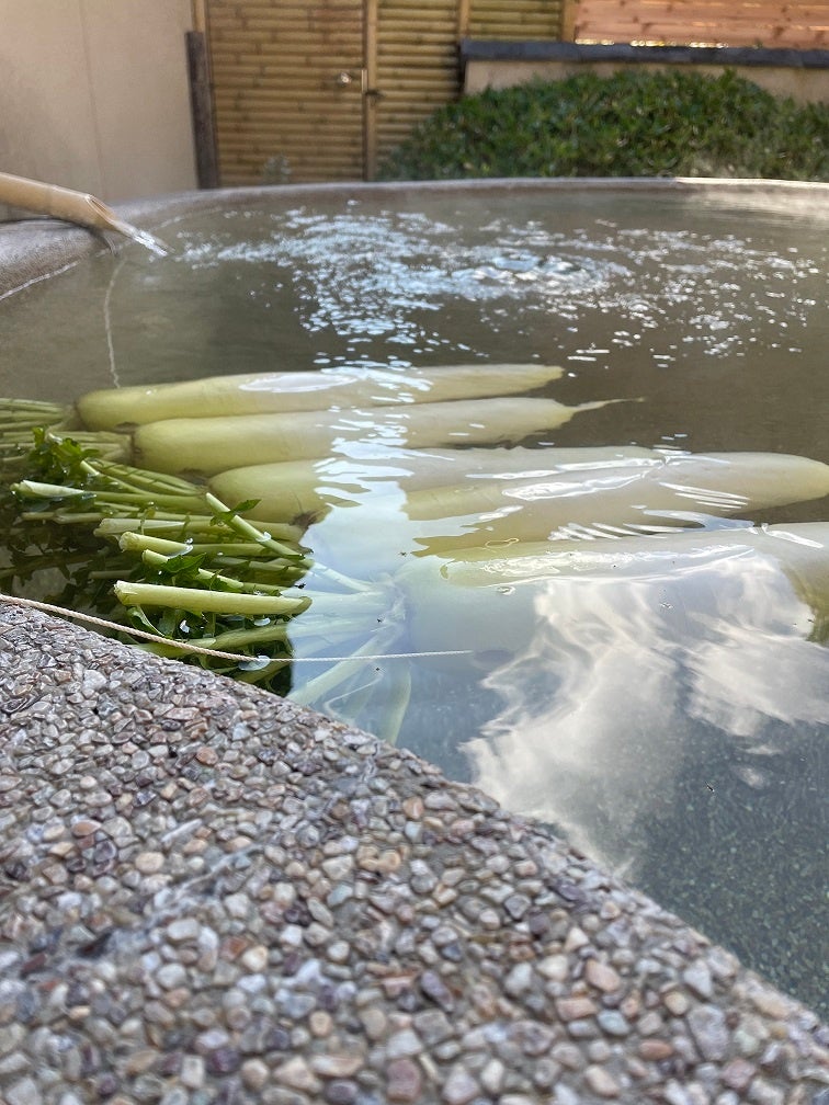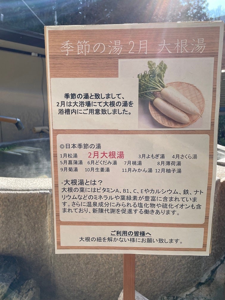 「季節の変り湯」のおしらせです。2月の季節湯は「大根湯」でございます。