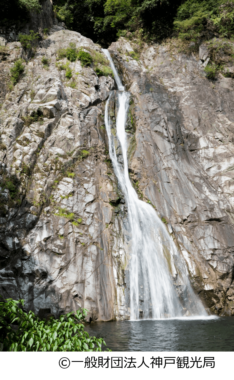 「布引の滝」は、新神戸駅の山側の生田川中流にかかる滝で、「日本の滝百選」に選ばれるほか、那智滝(和歌山県)、華厳滝(栃木県)と並び「日本三大神滝」の一つとされる名瀑です。