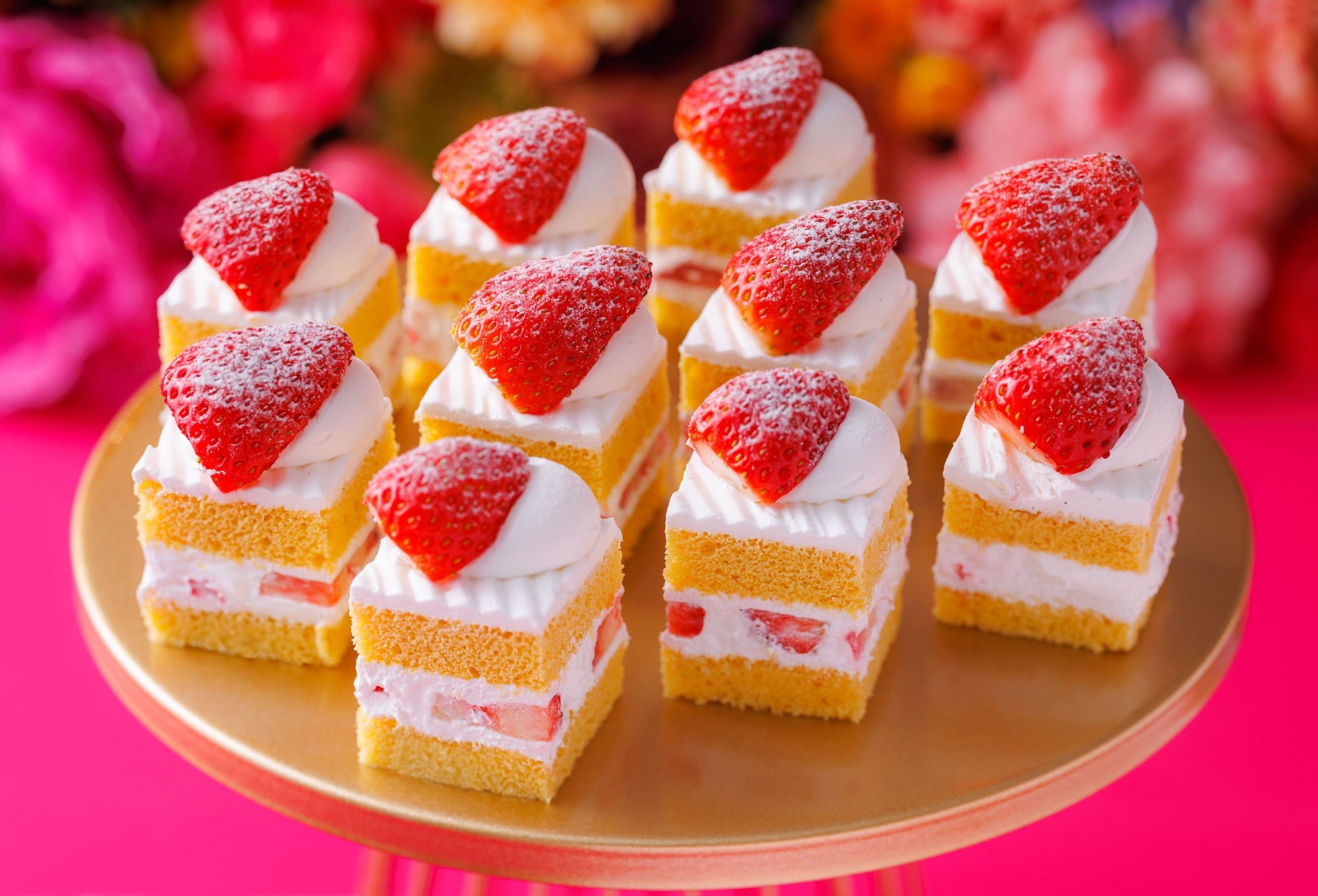 ホテルに隣接し、関西でも有数の花見スポットである大阪城公園にちなんで、4月1日(土)からは、桜をテーマにしたスイーツが新たに登場します。みずみずしい「博多あまおう」の甘さと、さわやかな桜の風味が調和した、見た目にも華やかなスイーツの数々にご期待ください。
