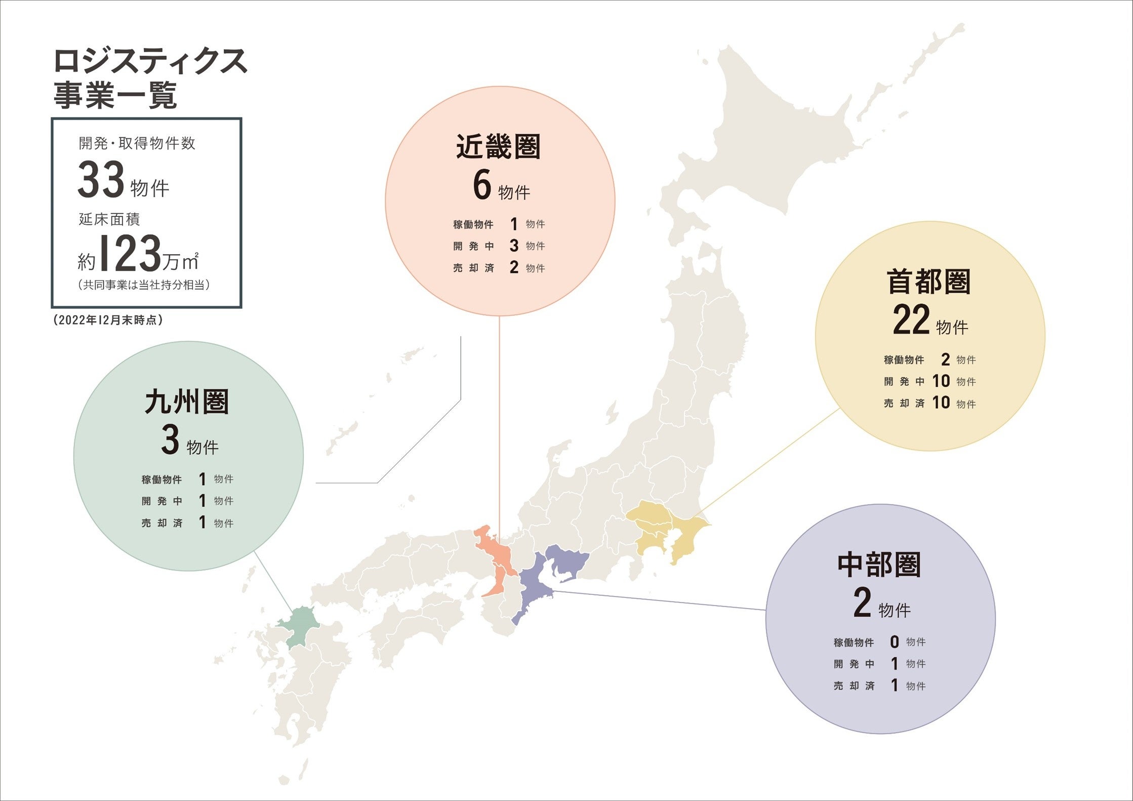 日本国内の物流施設事業に関しては、東急不動産では2016年より物流施設開発事業に参入しており、「社会の発展を支える、東急不動産のロジスティクス」をコンセプトとするロジスティクス施設「LOGI‘Q」を日本各地で展開し、現在までに33施設 約123万㎡の開発・運営に携わり、日本国内での社会インフラづくりに寄与してまいりました。
