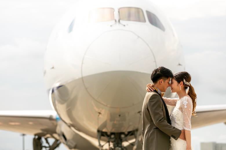 憧れの飛行機をバックに生涯記憶に残る写真を収めたい…大空に向かって飛び立つ飛行機を間近に感じながら二人だけのフォトウェディングを叶えます。普段は立ち入ることのできない飛行機が駐機するエプロンや、国際線ターミナルロビーなど特別なロケーションで、迫力のある写真撮影を通じ、成田空港ならではの壮大なスケールや非日常感を感じていただき、皆様の心に残る体験をご提供いたします。