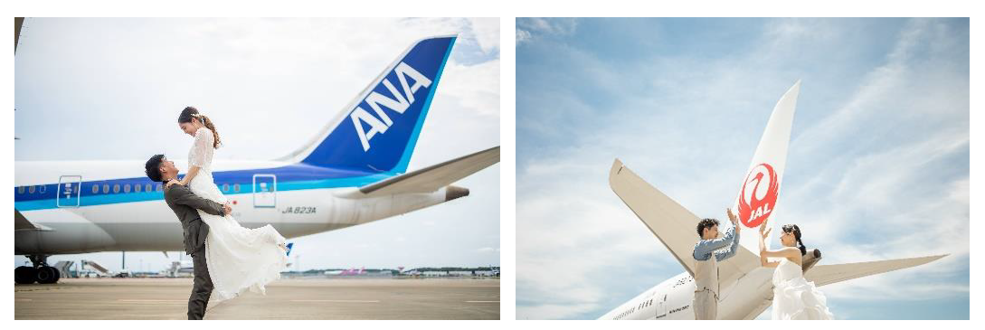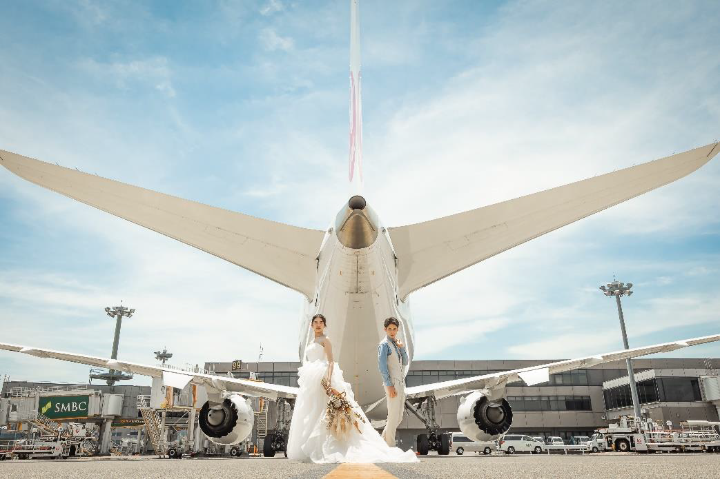 憧れの飛行機をバックに生涯記憶に残る写真を収めたい…大空に向かって飛び立つ飛行機を間近に感じながら二人だけのフォトウェディングを叶えます。普段は立ち入ることのできない飛行機が駐機するエプロンや、国際線ターミナルロビーなど特別なロケーションで、迫力のある写真撮影を通じ、成田空港ならではの壮大なスケールや非日常感を感じていただき、皆様の心に残る体験をご提供いたします。