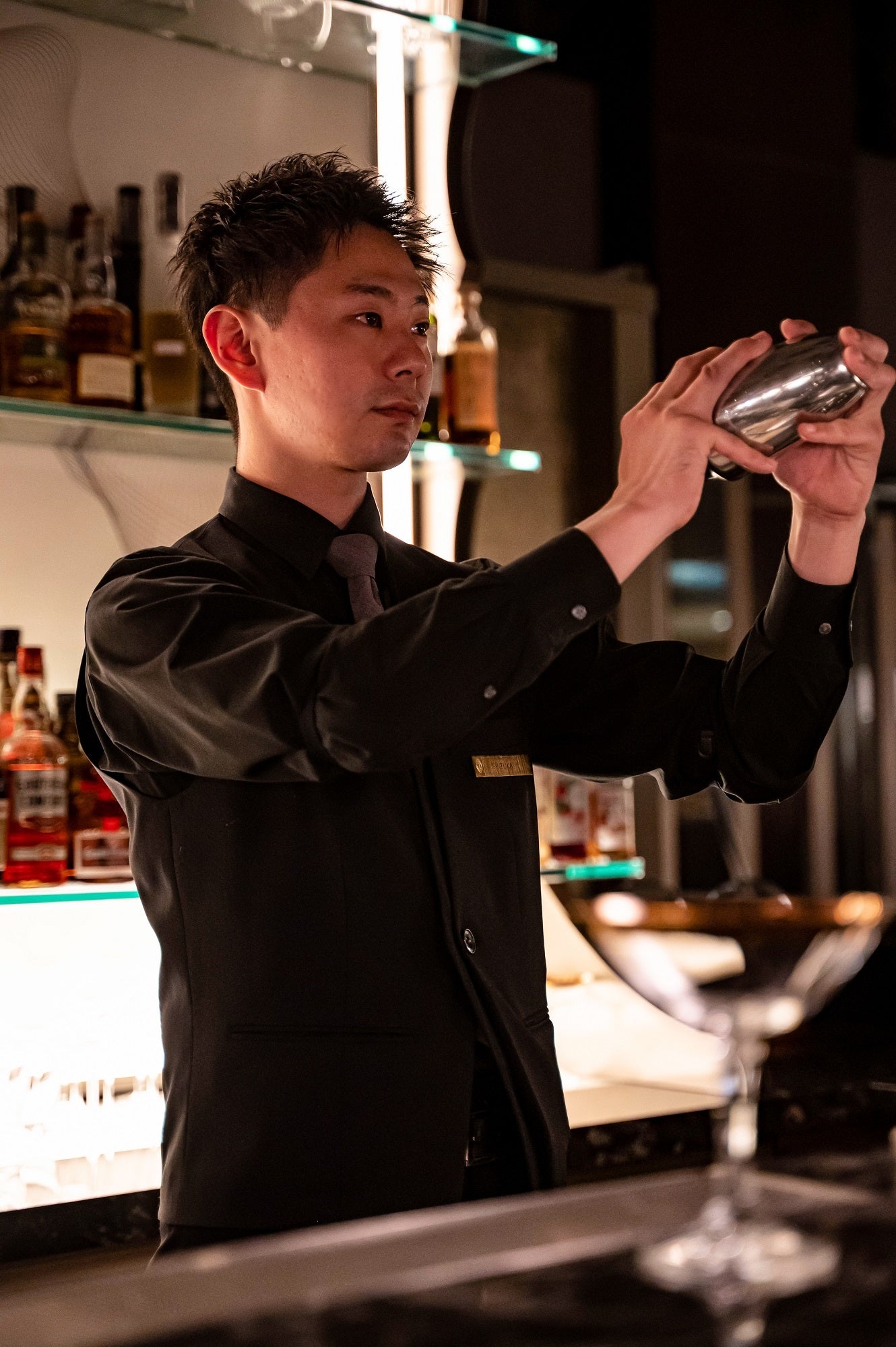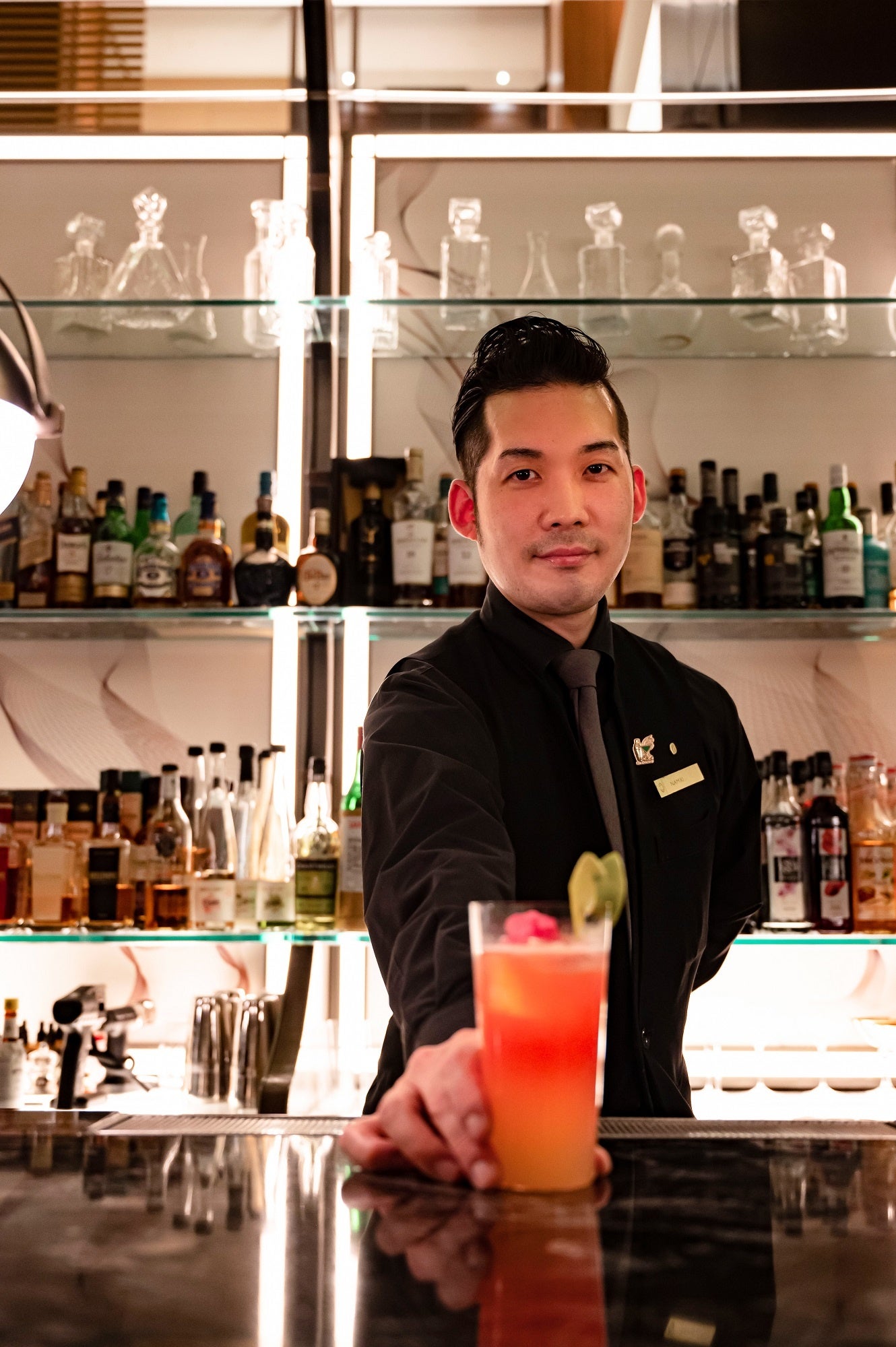①学生時代にアルバイト先の職人(キッチン)とサービス(ホール)の業務に感銘を受け、その両方を兼ね備えている二刀流のような”バーテンダー”という他にはない魅力の職業に最も惹かれたから。