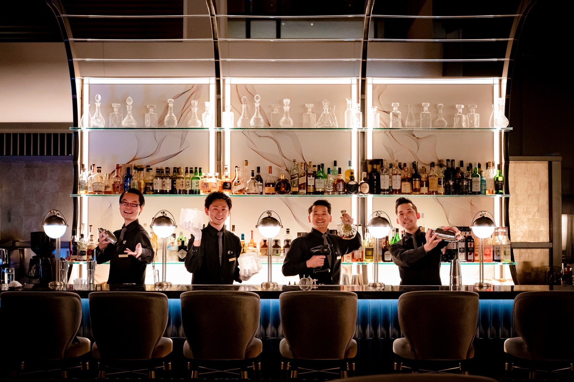 リュトモスの洗練された空間で皆さまをお迎えするのは、ストリングスが誇る4名のバーテンダーたち。そして高い技術と最新の知識、熱い情熱を持つ4人が提供するのは、ここでしか体験できないメモラブルなモーメント。