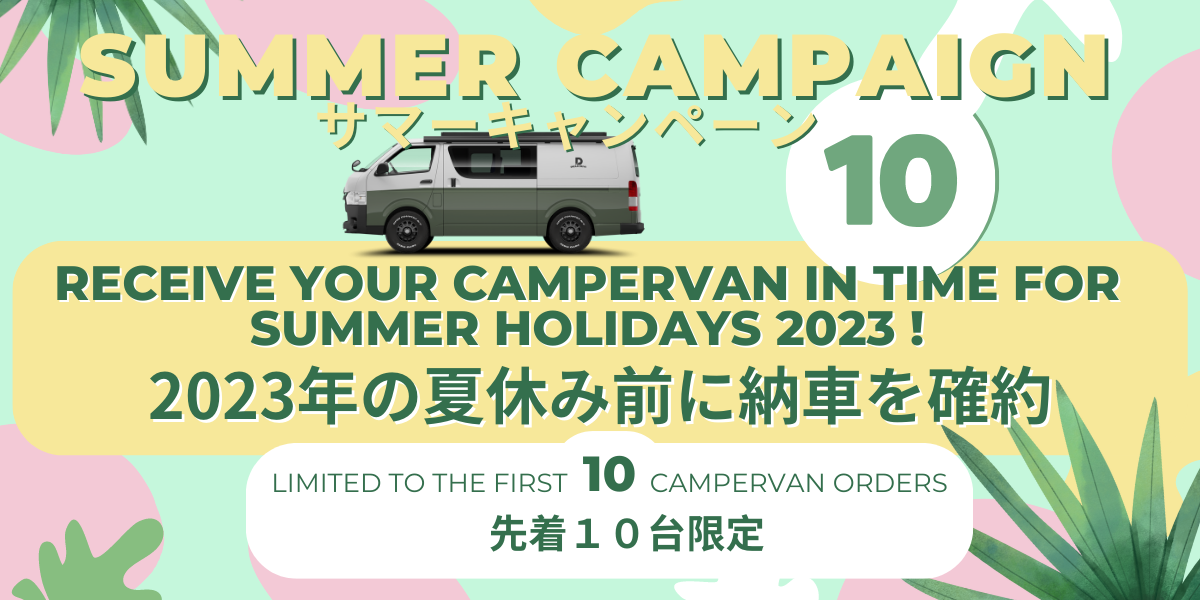 先着10名様限定のキャンペーンとなっておりますので、この機会にぜひ今年の夏は自分のキャンピングカーで