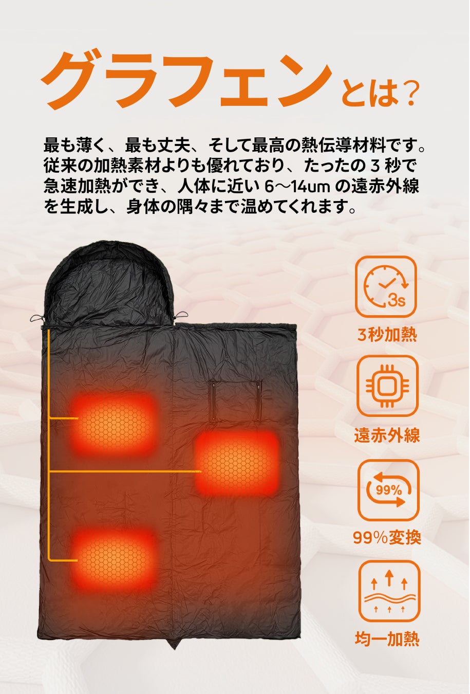 「Gamp-Futon」(ギャンプフトン)は、独自の電熱システムを採用したキャンプ用の寝袋で、グラフェン加熱システムを導入し、3段階の温度調節が可能。上質なコットンを使用することでさらに保温性に力を入れた、アウトドアに強い寝袋になっています。
