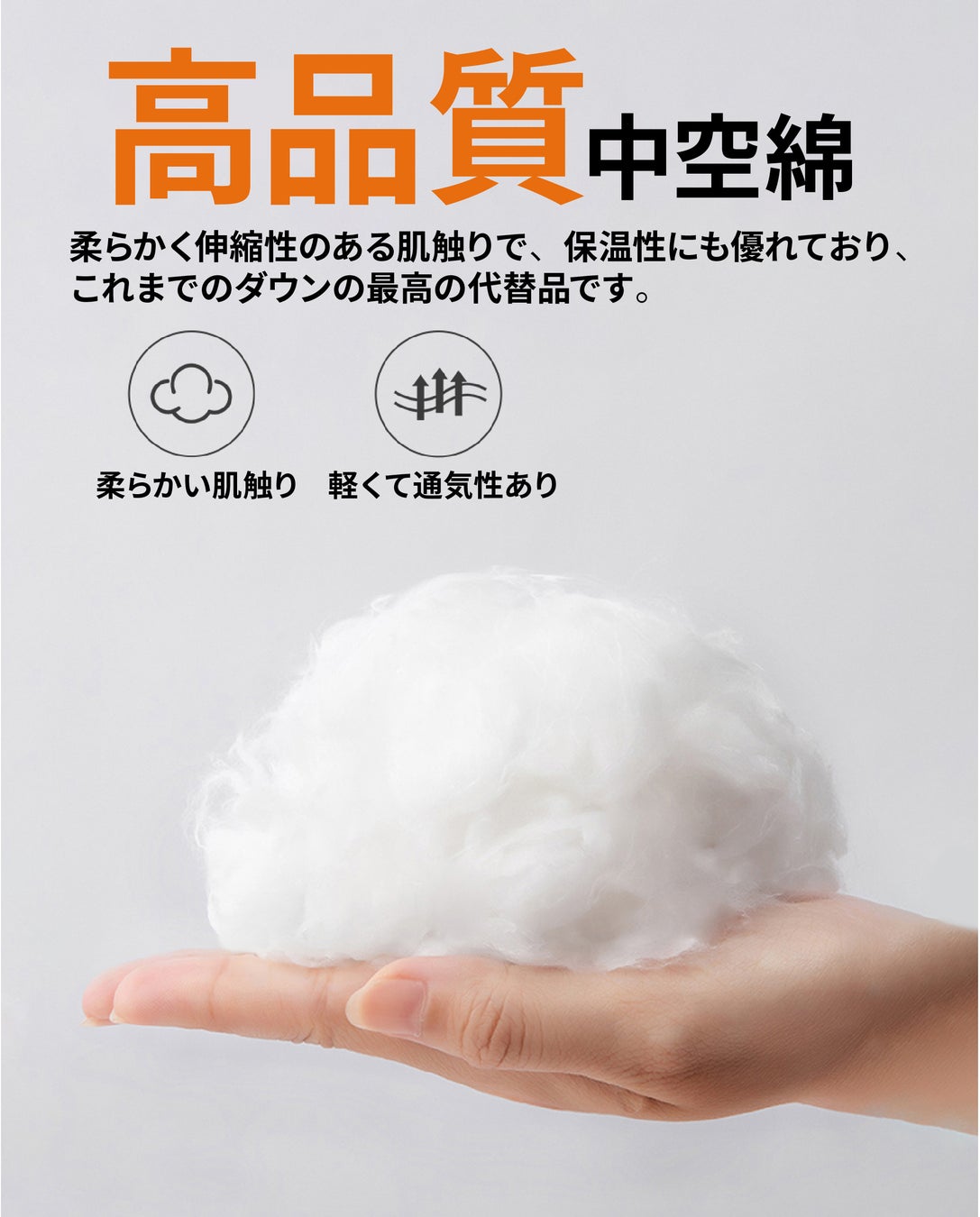 さらに、中空綿を使用しているので断熱性に優れ、暖めた空気を逃しません。
