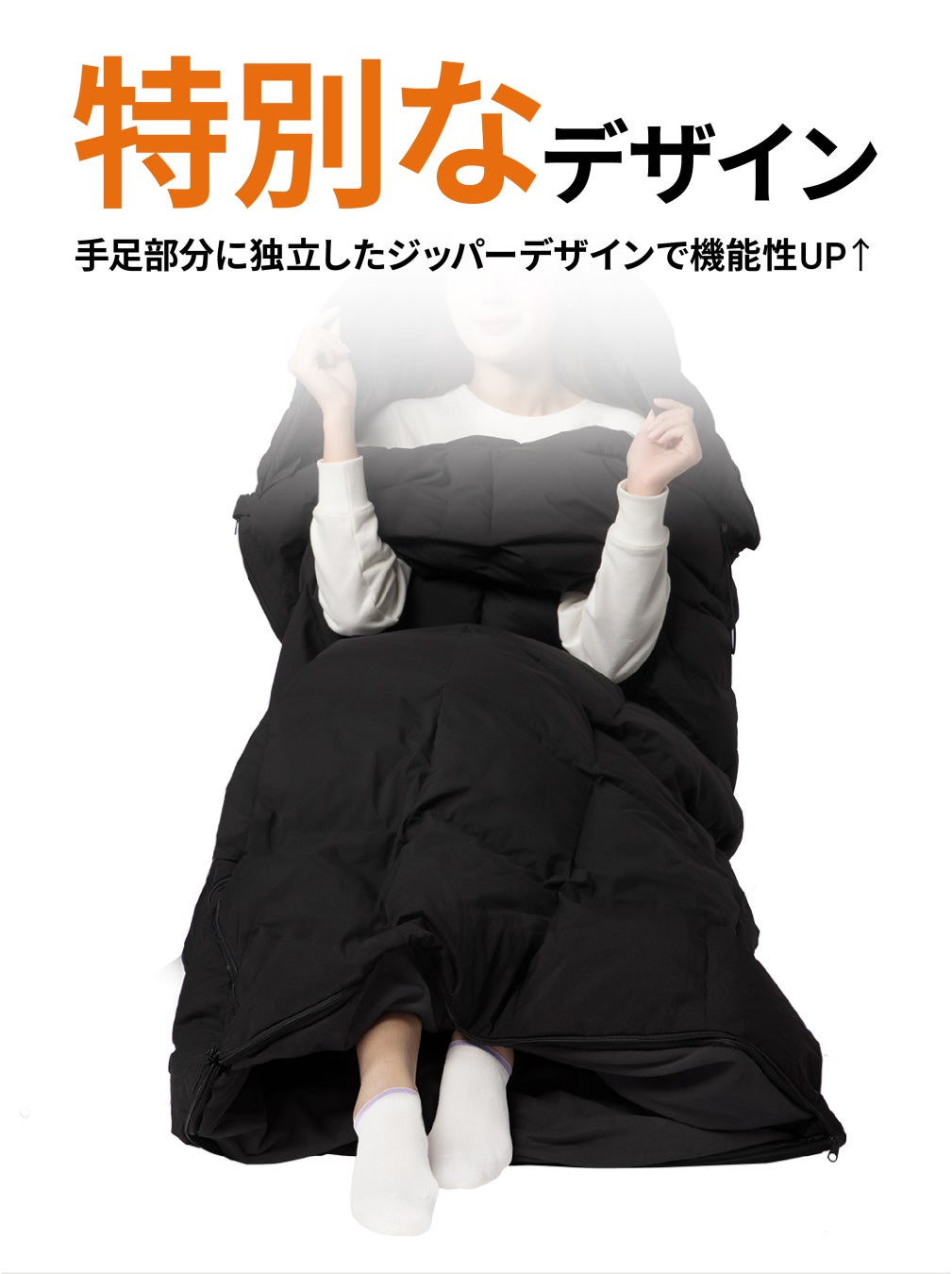 このジッパーがあることによりわざわざ寝袋を出ることなく、寝袋に入ったまま靴を履いて移動をしたり、手を使って作業をすることができます。