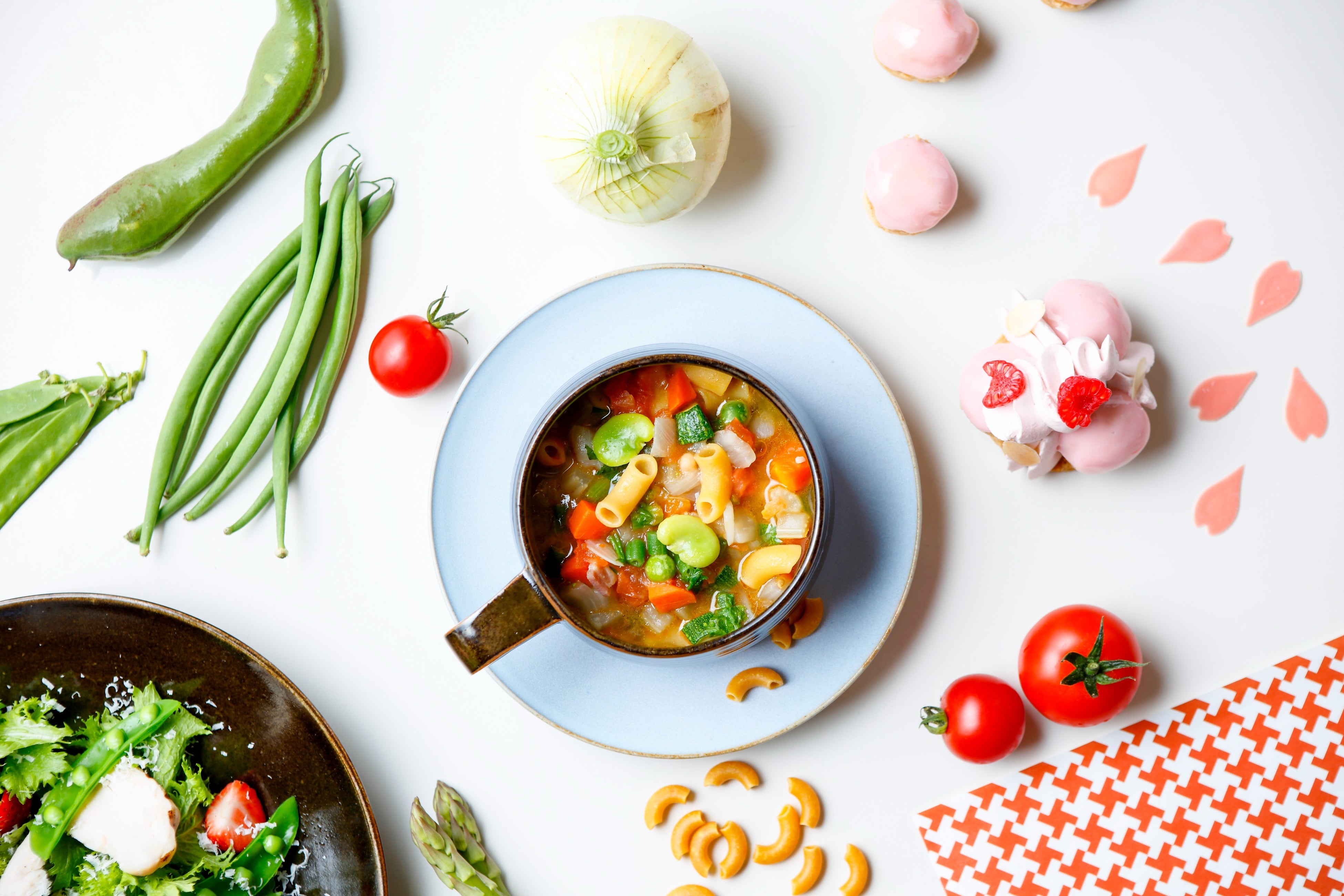 かつお節、鯖節、うるめから取ったお出汁と白味噌のスープに春野菜と「ZENBヌードル」を合わせた新感覚のヌードルスープです。白味噌の甘みやコクがうどん出汁の旨味と相まって春野菜の美味しさを引き立てます。また黄えんどう豆で作られた「ZENBヌードル」では豆の風味、クセになる食感やのど越しをお楽しみいただけます。ヌードルの横には2種類のコンディメンツをご用意し、ライスパフはクリスピーな食感、香りと辛味をプラスし、ラー油をかけてピリッとした味わいに変化させてもそれぞれの風味をご堪能いただけます。春らしいカラダ想いの美味しさをお楽しみください。