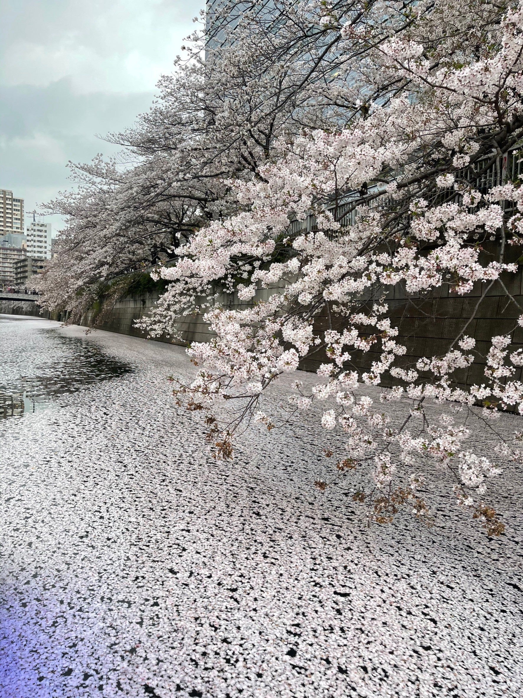 両サイドに約800本の桜が植わっている目黒川。雅叙園付近では、満開の桜を潜り抜ける桜トンネルが楽しめます。また、花筏(はないかだ)は満開を迎えた後に1日だけ見ることのできるとても貴重な、日本の風情を感じる景色です。上流に溜まった桜の花びらが、潮の満ち引きとともに下流へと流れていき、桜の絨毯のようになり、息をのむ絶景です。水面を埋め尽くす花びらを、かきわけながら船が進みます。