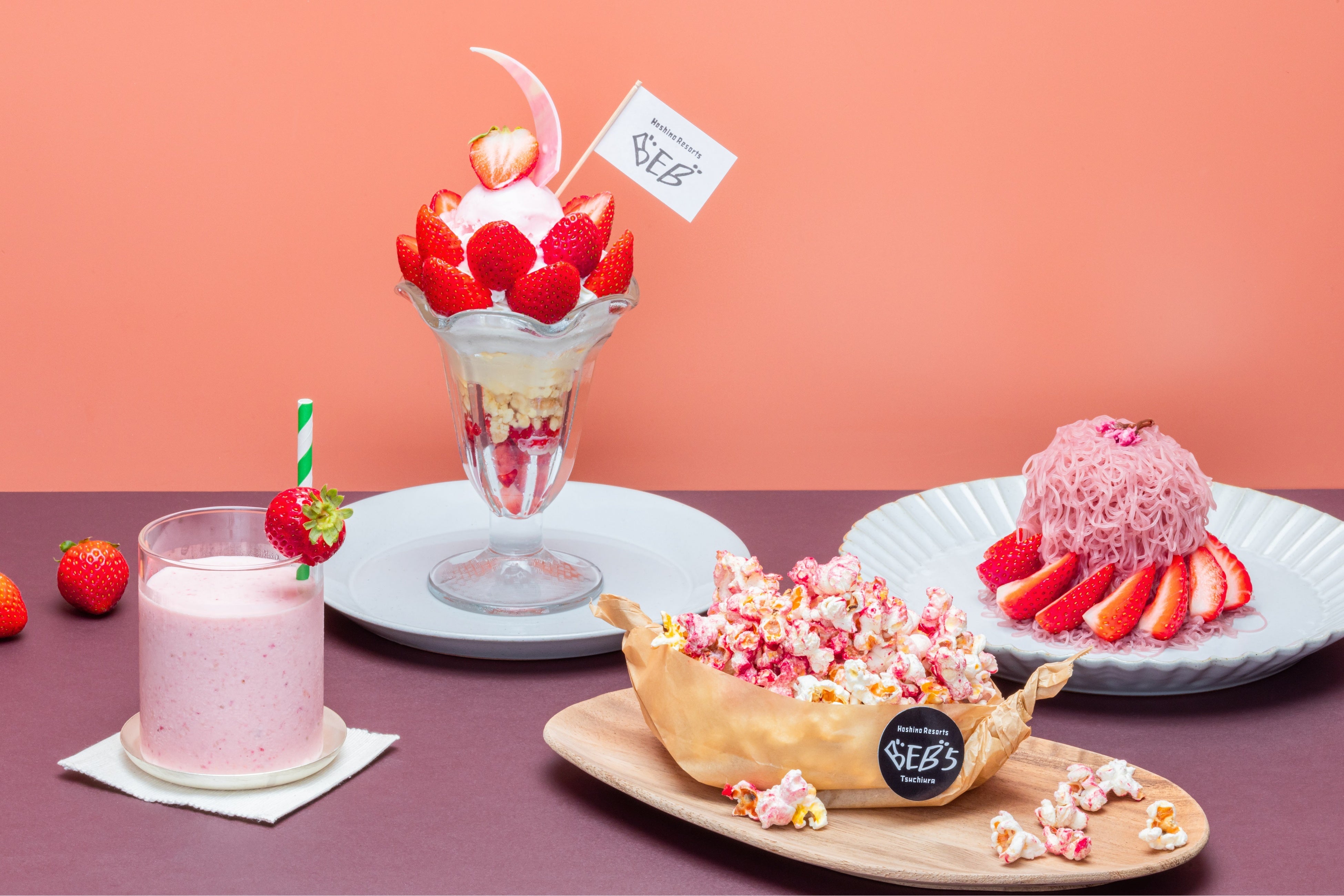 パブリックスペース「TAMARIBA」がいちごパークに変身します。天井から吊るされたいちごの形のバルーンや、いちごに埋もれて写真を撮って楽しめる「いちごボールプール」、オリジナルの「いちご型自転車」などユニークな方法でいちごを楽しみ尽くすための空間です。