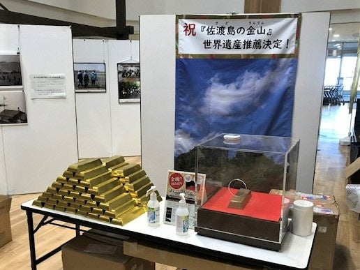 ・佐渡の物産販売、金塊つかみ体験、パネル展示など。