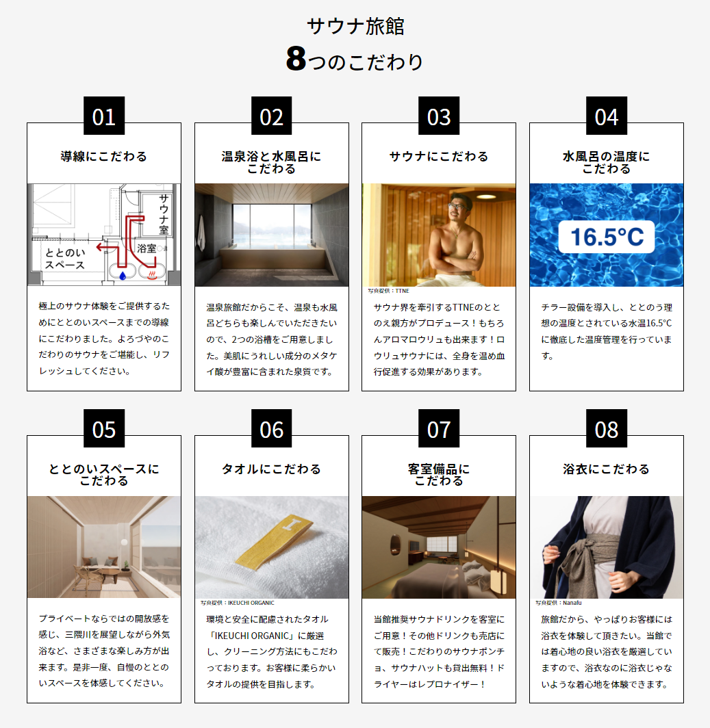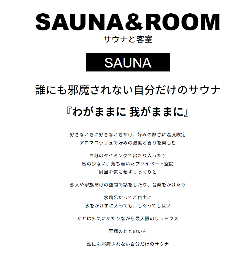 全客室にプライベートサウナを完備し、心身ともにととえる場所に!
