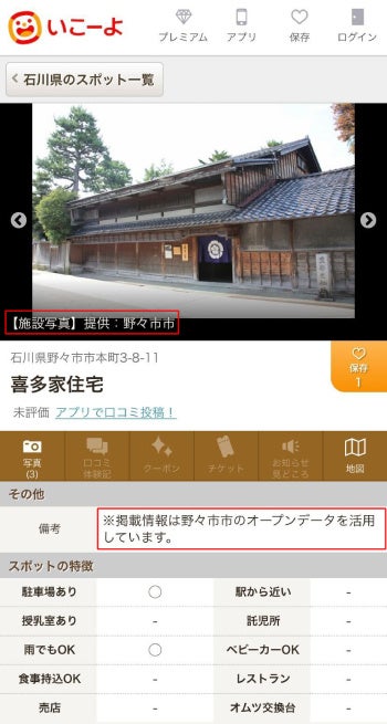 2023年2月より、野々市市のオープンデータを利用しています。データは「いこーよ」のサイトおよびスマホ向けアプリの「おでかけ」情報欄に掲載され、どなたでも無料でサービスをご利用いただけます。なお、情報欄にはオープンデータを利用している旨記載されます。