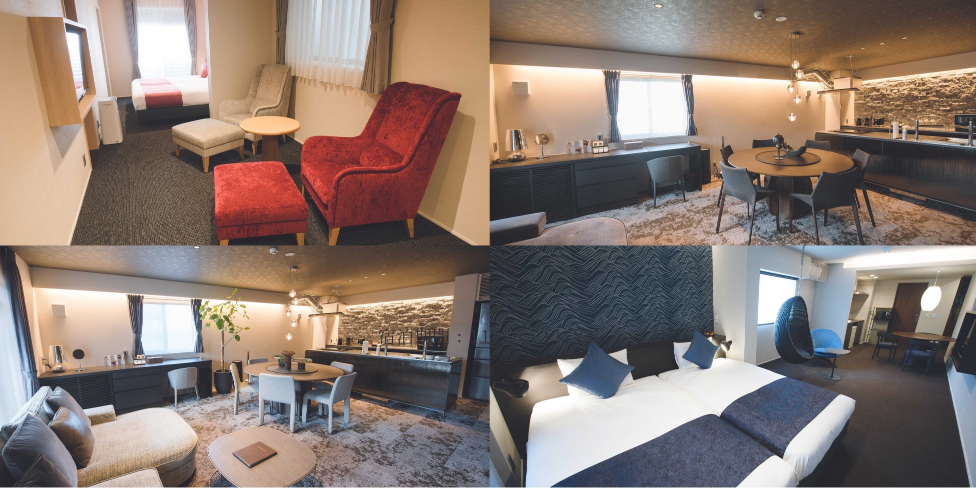また、すべての客室にキッチン、調理器具、乾燥機付き洗濯機を完備しており、住まうようにお過ごしいただけます。色彩豊かなお部屋とこだわりのインテリアをお楽しみください。