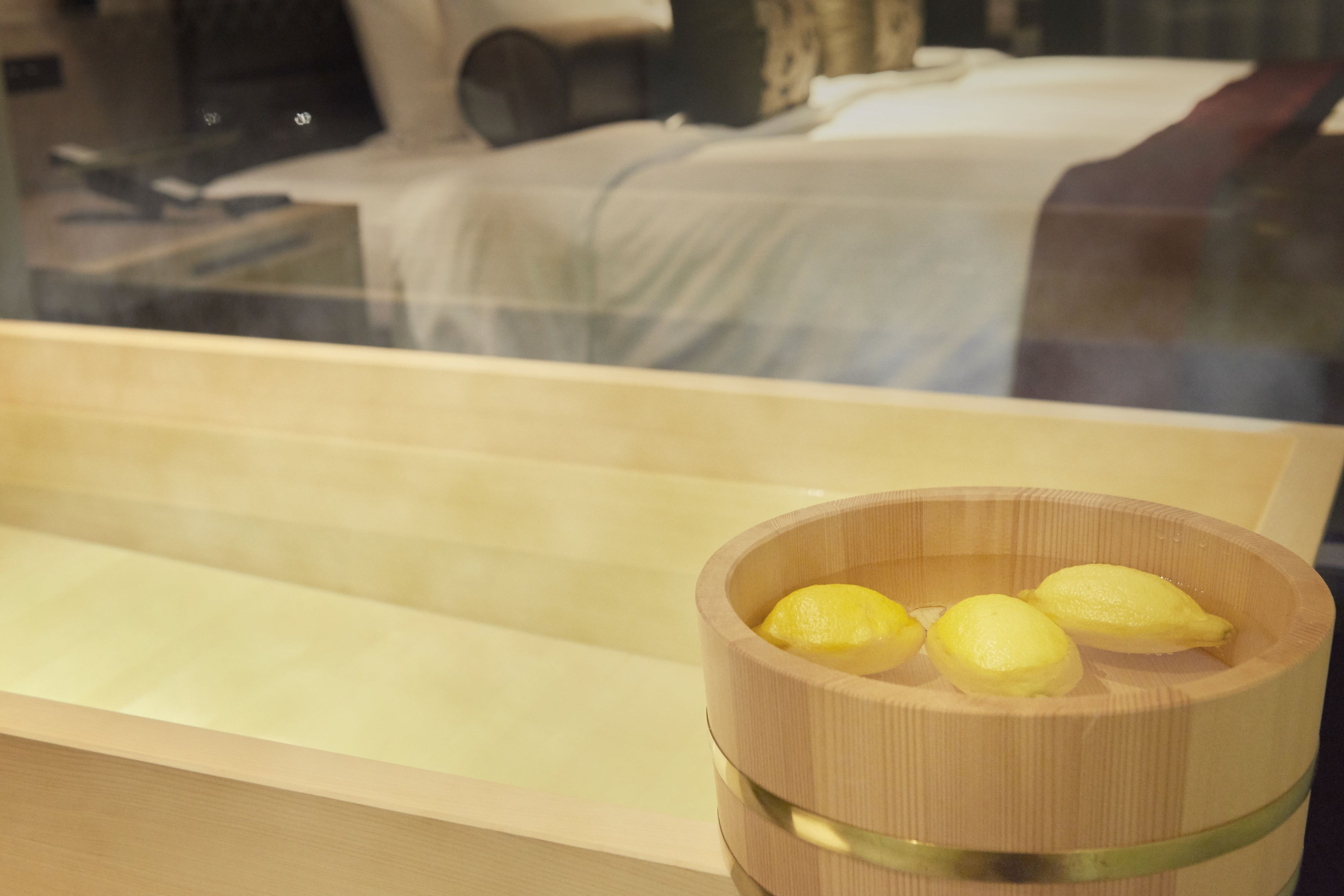 和モダンなインテリアデザインに、窓外に広がる日本庭園の眺望、ヒノキ風呂で日本の和風呂文化を体験できる、まるで旅館のようなユニークな体験が叶う「新江戸ルーム」で、身も心も温まる癒しのご滞在をお愉しみください。