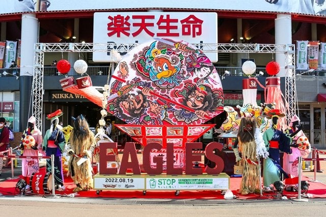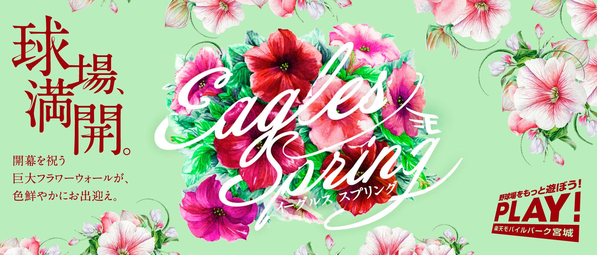 スタジアム正面広場には「決してあきらめない」の花言葉を持つペチュニアを使った高さ3メートル・幅10メートルのフラワーウォール、スタジアム各所には花のオブジェが登場し、楽天イーグルスファンの皆様をお出迎えします。