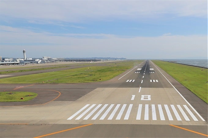 ※滑走路の両端にある「指示標識」。飛行機が進入してくる方向から見た滑走路の方位を示すもの。北を起点にして時計回りで角度ごとに刻まれています。セントレアの滑走路には南側に「36(360度)」 、北側に「18(180度)」 の表示があります。