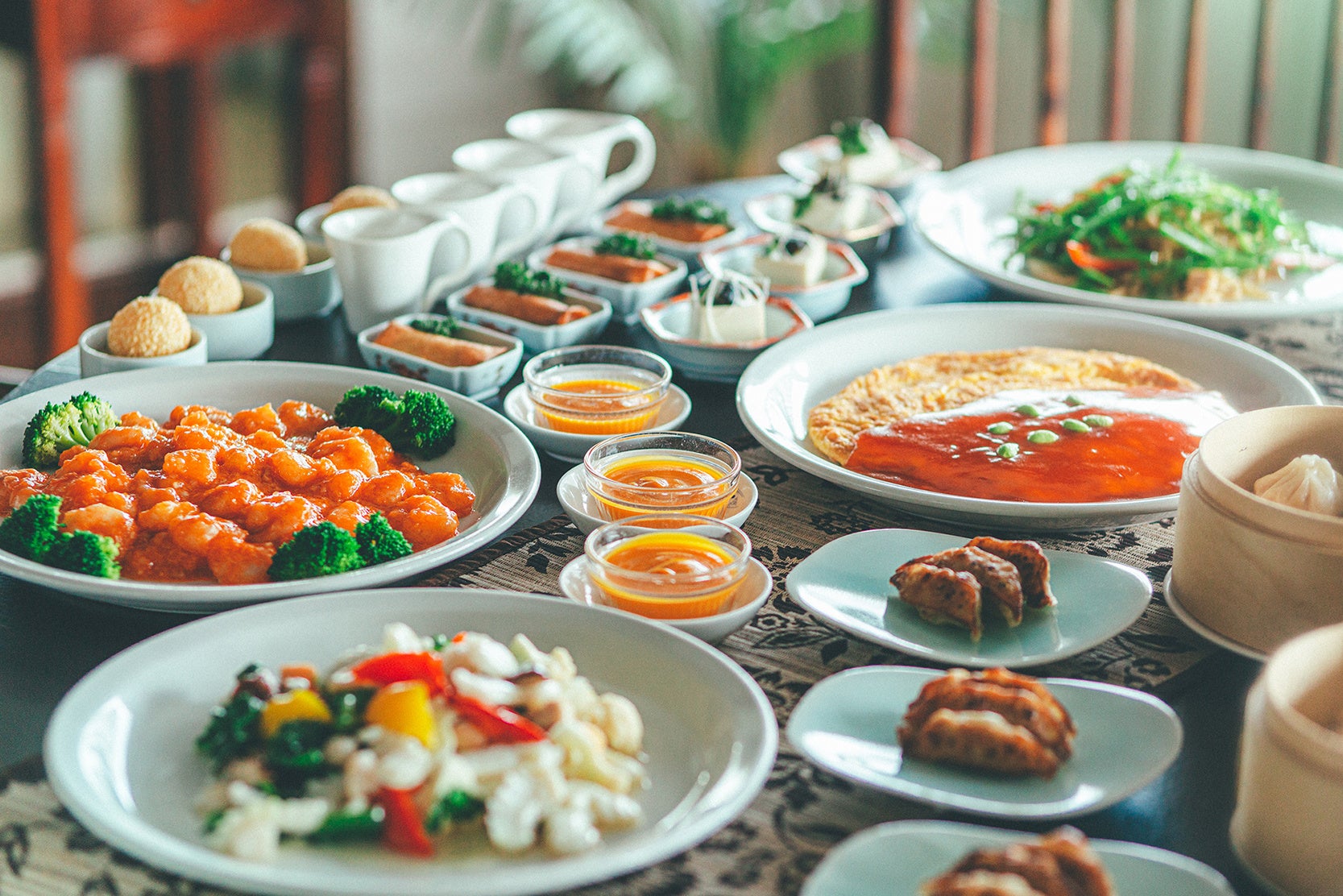 小籠包、蟹焼売、フカヒレ餃子、肉包、海老チリ、麻婆豆腐、マンゴープリンなど