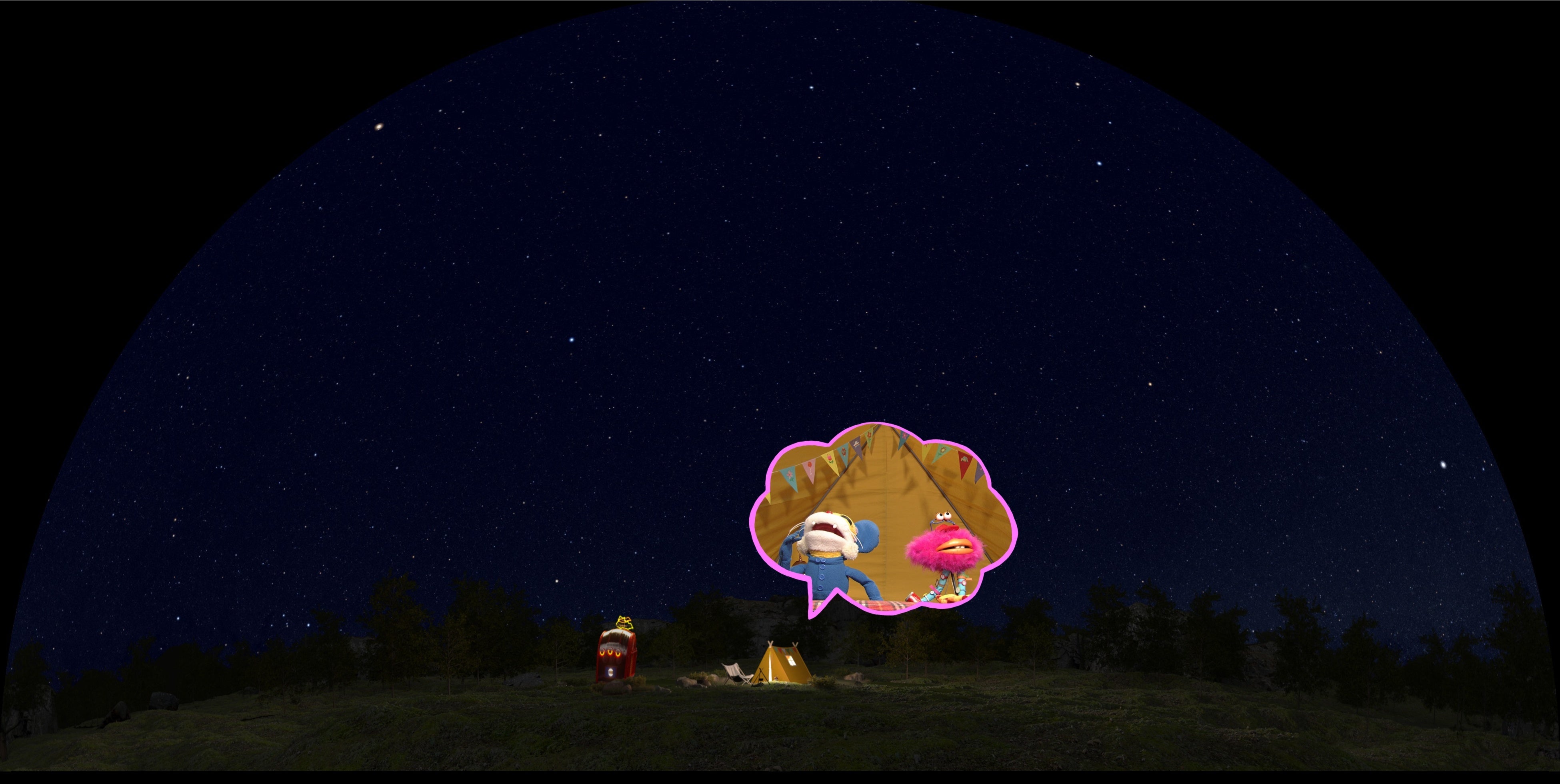 一方、北斗七星のお話では、日照りが続き井戸まで枯れてしまった村で、お母さんに水を飲ませてあげたいベラボラ。ほうぼうを歩き回り、やっと見つけた水を持っての帰り道・・・。それぞれ、おおぐま座や北斗七星にまつわる物語をニャンちゅうとベラボラが演じます。ドームに映し出される360度全天周映像ならではの迫力で、星座に関する知識を楽しく学んでいただくことが出来ます。