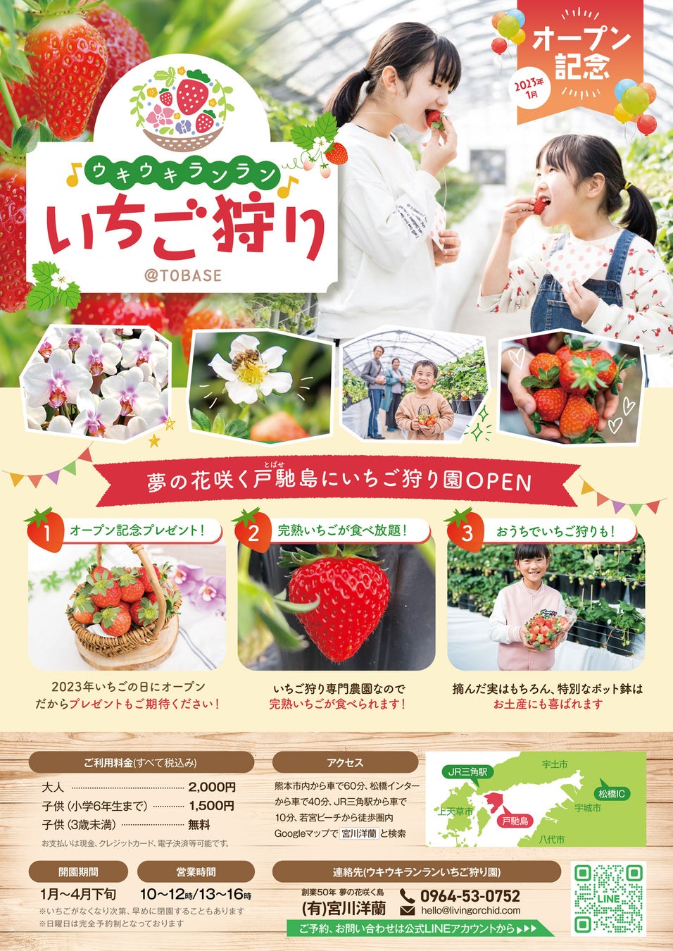 「お客さんの来ない、静かな冬の島を元気にしたい!」として熊本県宇城市(うきし)戸馳島の洋ラン農家による、天草方面で初となるいちご狩り園をオープンします。