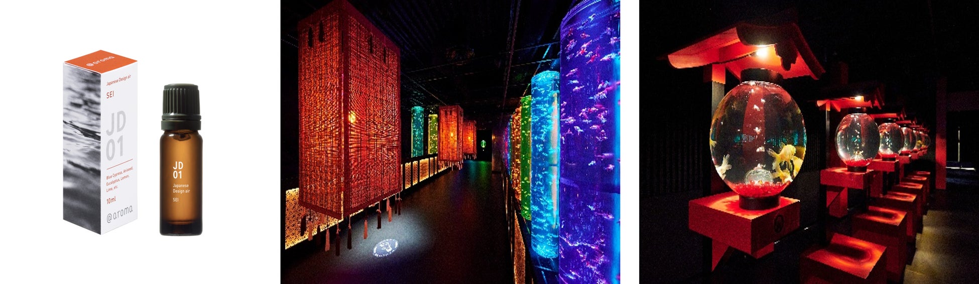 清潔な空気環境をつくるユーカリを中心にブレンドした香りでは、金魚それぞれの美しさをじっくりと鑑賞することができる“新金魚品評”の作品エリアを演出しています。