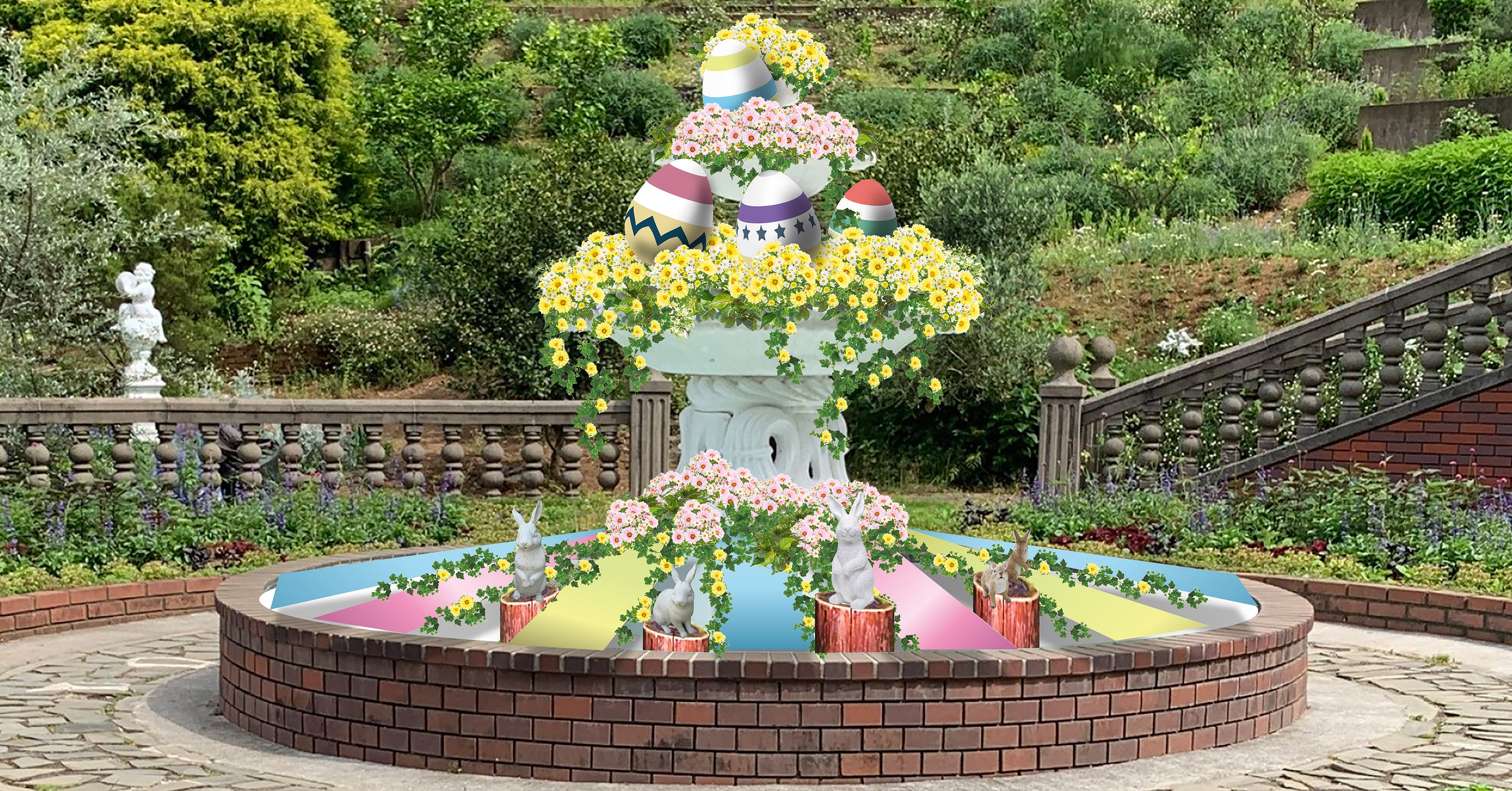 また、期間中は、どなたでもご参加いただけるスタンプラリー形式のゲーム「EGG HUNT(エッグハント/参加費無料)」を開催します。特別な柄のイースターエッグ10個に隠されたキーワードを見つけて、チケット販売所のスタッフにお伝えいただいた方には、ミニプレゼントをお渡しいたします。気軽に手作り体験ができる「ハーブ工房」では、エッグ型のバスボムワークショップを開催します。お好みにあわせてブレンドした香りとカラーリングで、世界に1つだけのバスボム作りを体験いただけます。ぜひお家へお持ち帰りいただき、旅の想い出と共に癒しのバスタイムをお楽しみください。園内に咲く花々が織りなす色彩に心躍らせ、春の訪れをご家族、ご友人とお祝いする、喜び溢れる1日をお過ごしください。