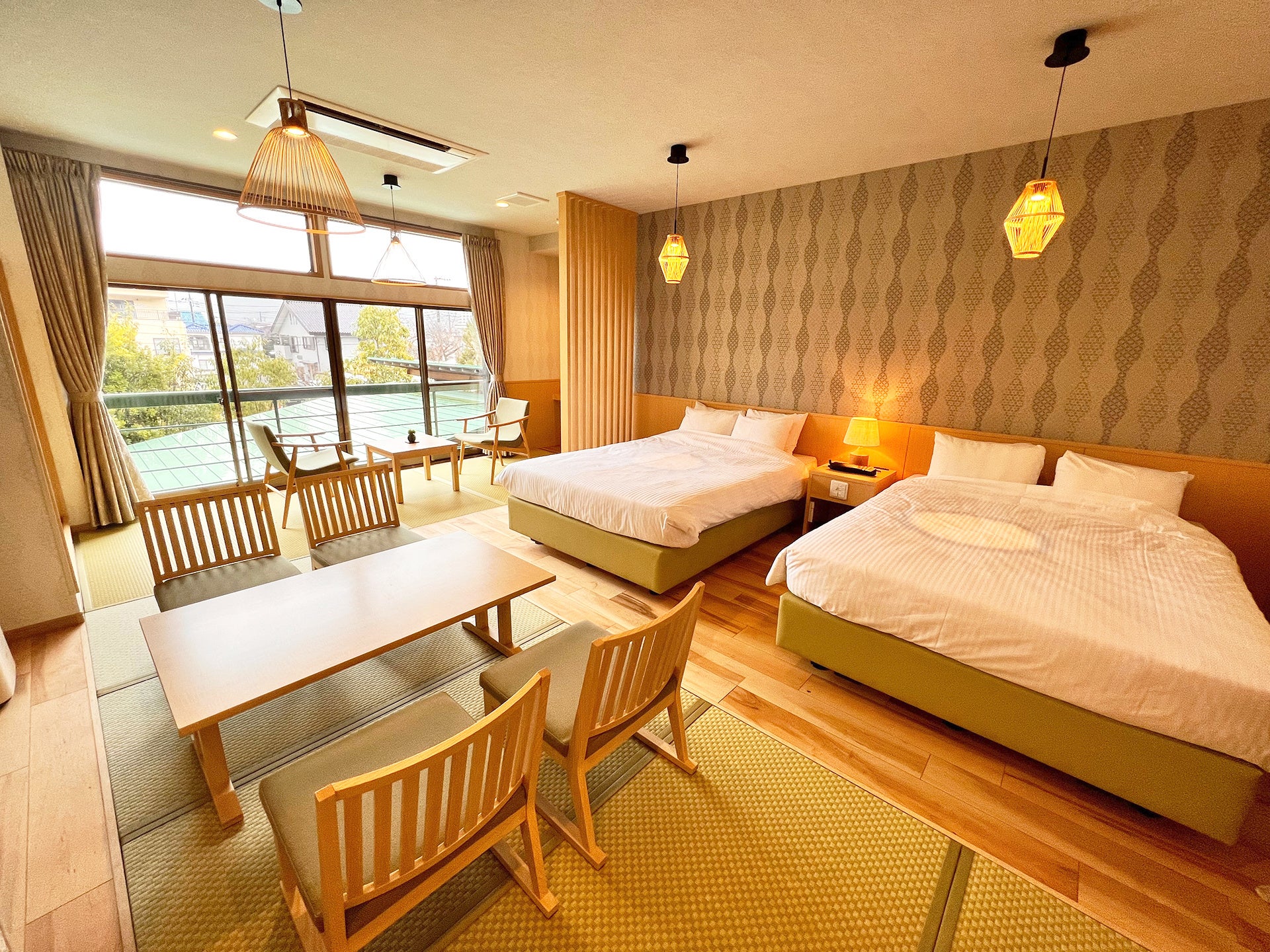 客室を含め外観や館内共用部など全面的に改装し、より快適にお過ごしいただける温泉旅館へとバージョンアップいたします。客室は既存の34部屋に加えて2部屋新設し、高級感のある和洋室が4部屋新たに誕生します。和洋室のインテリアは落ち着いた和モダンなデザインで女子旅やカップルでのご利用にぴったり。ファミリーやグループ旅行にまで対応可能な十分な広さがございます。