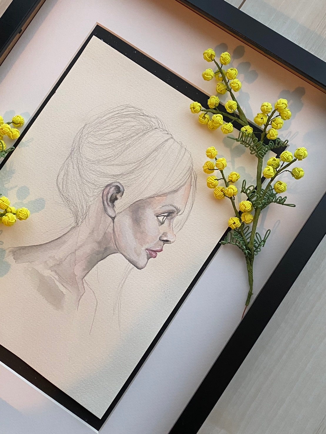 コンセプト:イタリアに住んでいた頃、3月8日の国際女性デーにミモザを贈り合うと聞いたときから、いつか作りたいと考えてきたテーマで、希望を表す黄色と女性同士の連帯を、水引の「結」で表現した。