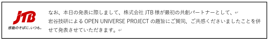 OPEN UNIVERSE PROJECT事務局のプレスリリース