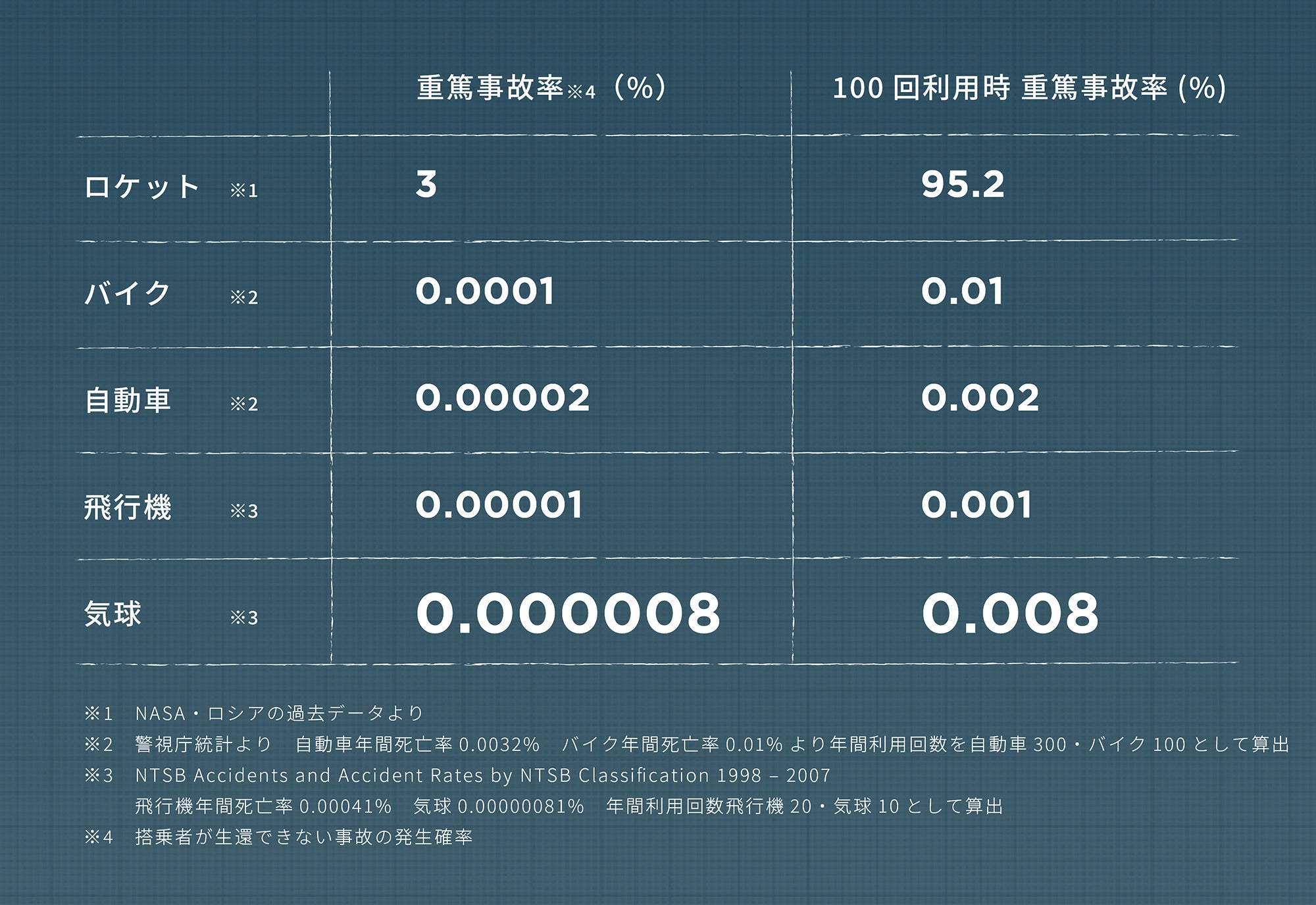 ロケットで4.8%、自動車は99.999%、気球は99.9992%