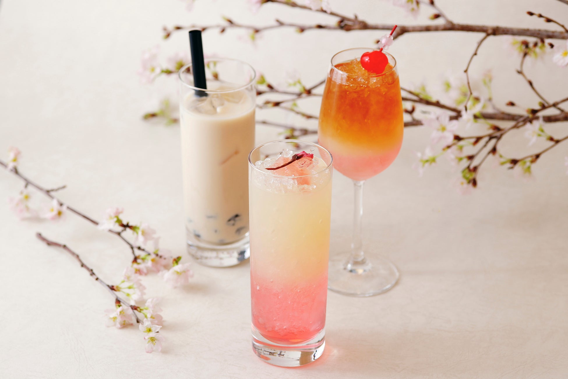 【料金】(写真左より)さくらのフレーバードティー ¥1,540 / ペシェ オレ ¥1,210 / さくらのジントニック ¥1,320(いずれも税込・サ別)