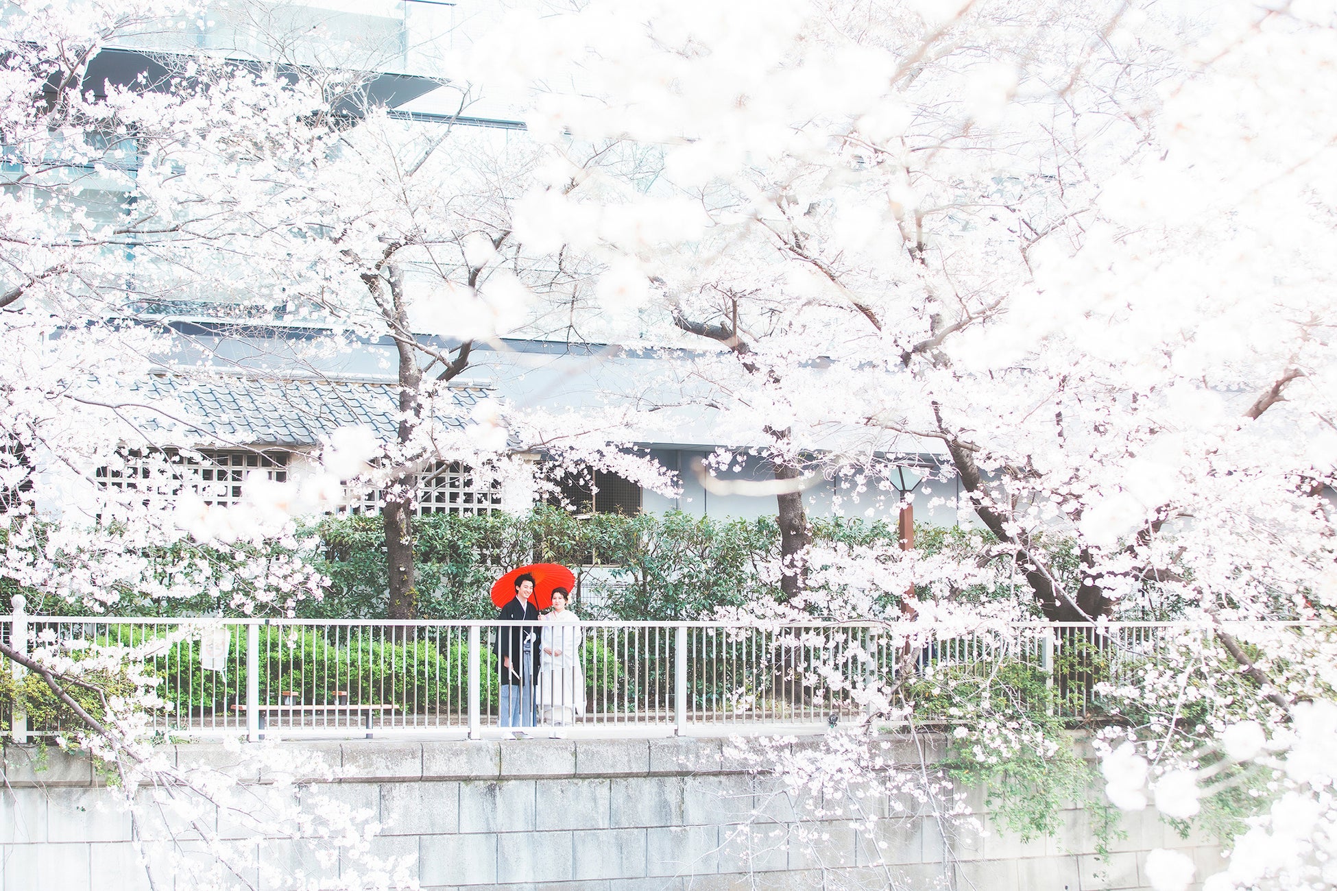 【内容】目黒川沿い桜撮影 / ホテル雅叙園東京 和室宴会場玄関撮影 / 新郎新婦衣裳各1着(和装のみ) / 新郎新婦着付 / 新婦洋髪ヘアメイク / レンタル髪飾り / ブライダルエスコート / 撮影データ