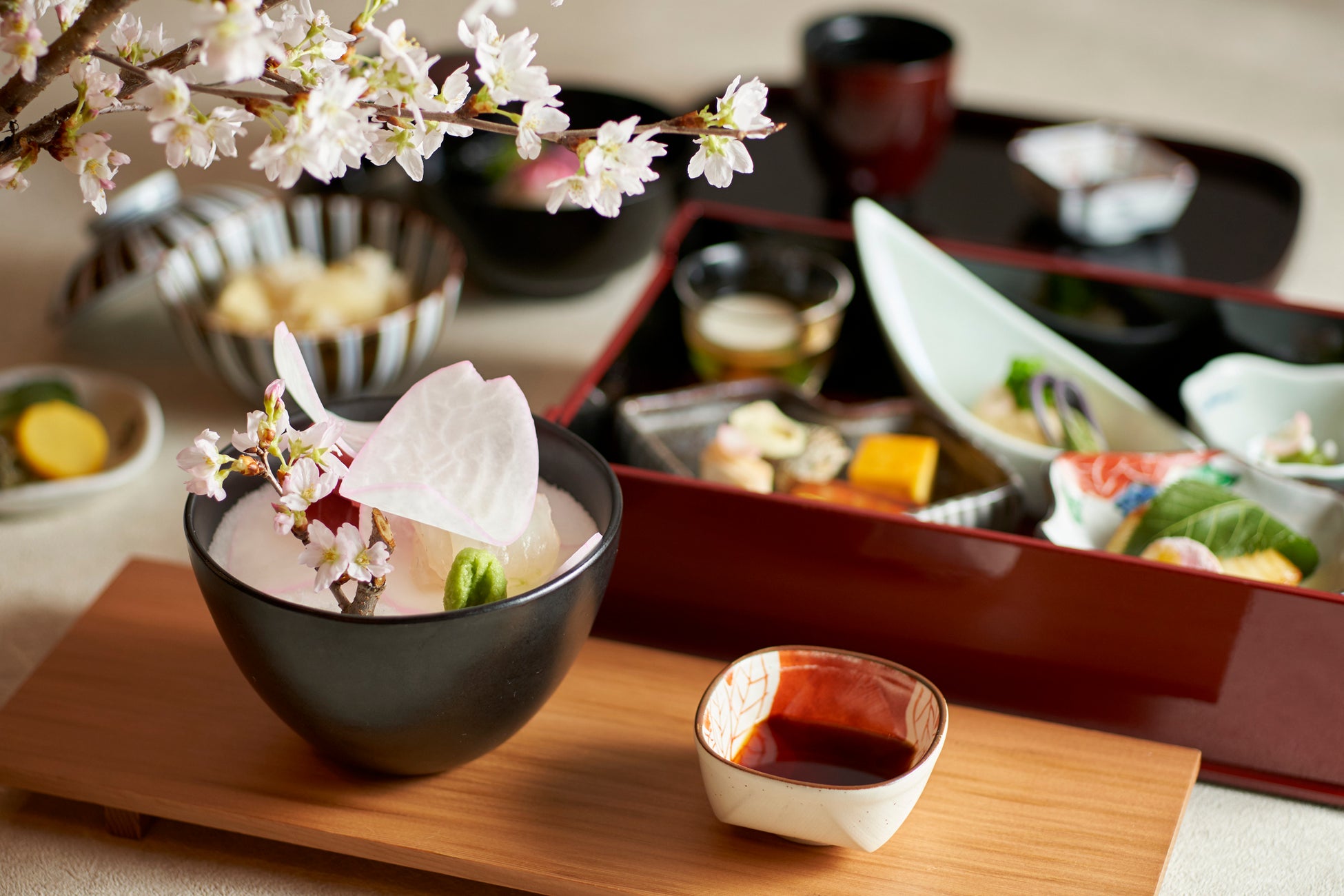 レストランやショップでは、桜をテーマにしたメニューが勢ぞろい。目黒川から伐採された桜の木のチップを用いた燻製料理をはじめ、桜色のスイーツやドリンク、桜の時期に旬を迎える食材をふんだんに使った数々のお料理をご堪能下さい。また、「花咲く書道~さくら~」体験付ランチも開催。お好きな文字に想いをのせて彩り豊かに仕上げるワークショップをお愉しみいただけます。
