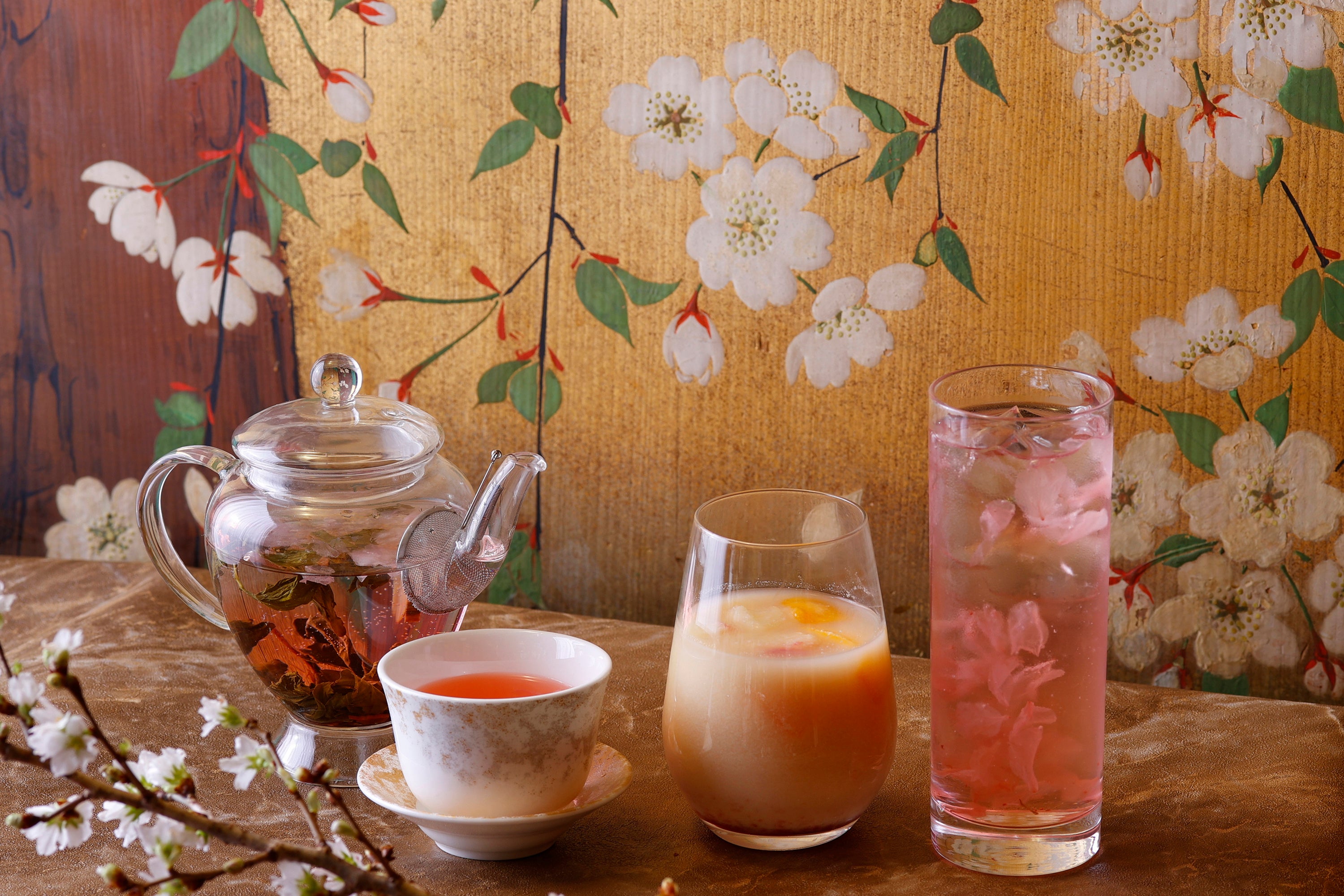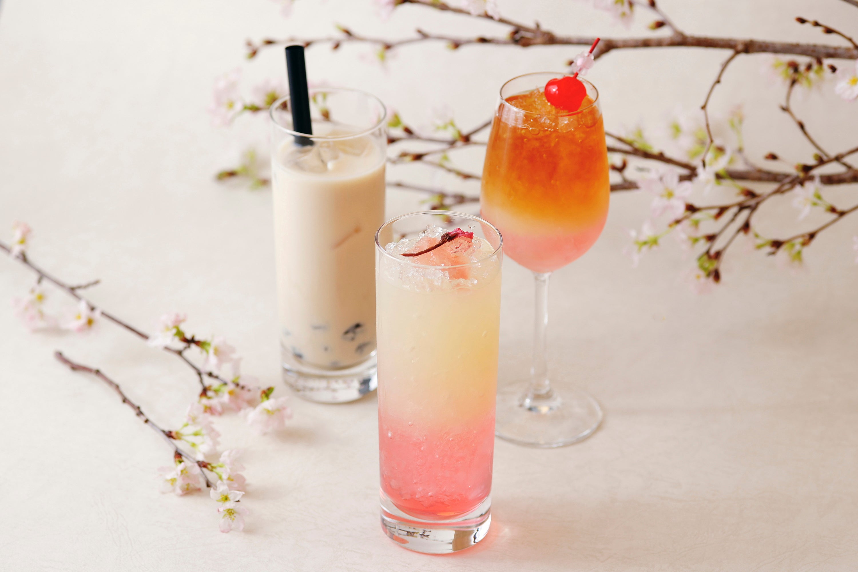 【料金】(写真左より)さくらのフレーバードティー ¥1,540 / ペシェ オレ ¥1,210 / さくらのジントニック ¥1,320(いずれも税込・サ別)