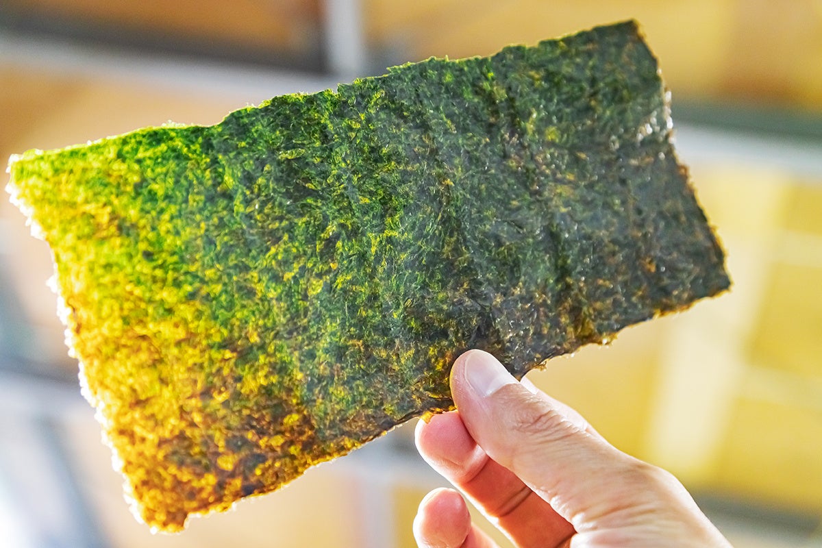 神戸では東須磨、須磨浦、塩屋、東垂水の海で海苔を生産しています。神戸で生産されたものだけが名乗ることのできるブランド「須磨海苔」。大阪湾の豊富な栄養と明石海峡の潮の流れの中で育つため、アミノ酸・カルシウムなどの栄養が豊富で、色が黒く、肉厚です。特に一番摘み海苔は、10数回程度摘み採りが行われる中の1回目に摘み採ったもので、風味の豊かさが特徴です。