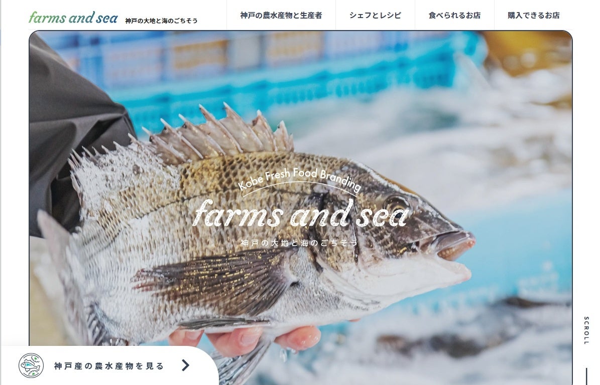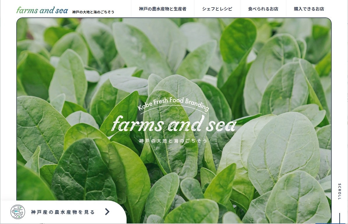 プロジェクト「farms and sea」の一環として、神戸を代表する食材(農水産物)10種(お米、北神ねぎ、トマト、ほうれん草、いちご、いちじく、須磨海苔、しらす、ハモ、黒鯛)及びこうべ旬菜に関する情報を掲載するウェブサイトです。