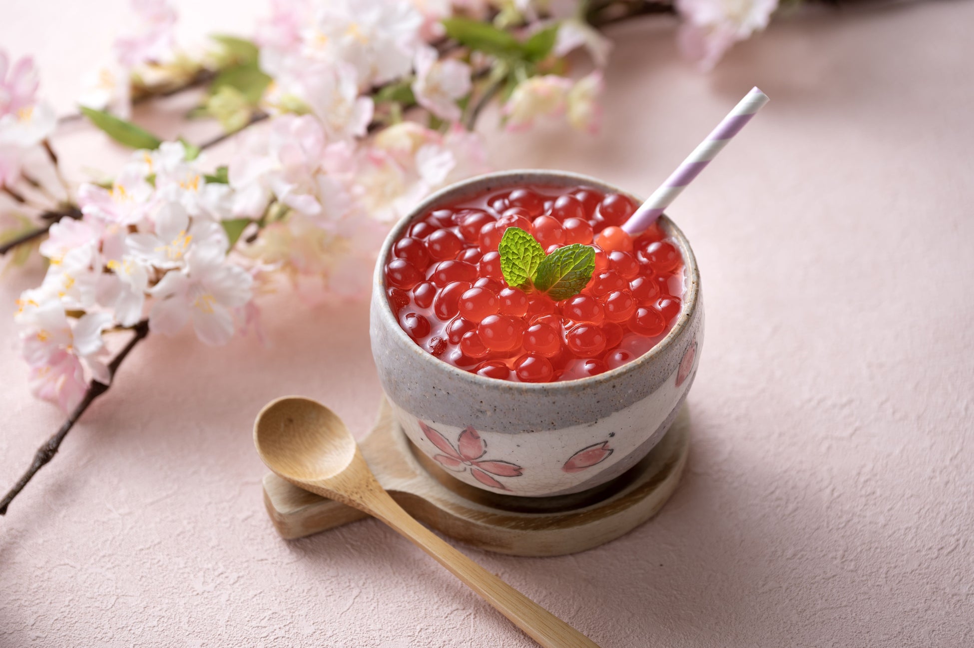 ストロベリーシロップが入った鮮やかな粒を“いくら”に見立てた新食感ドリンクです。写真映えする見た目はもちろん、今までにない新鮮な感覚をお試しください。