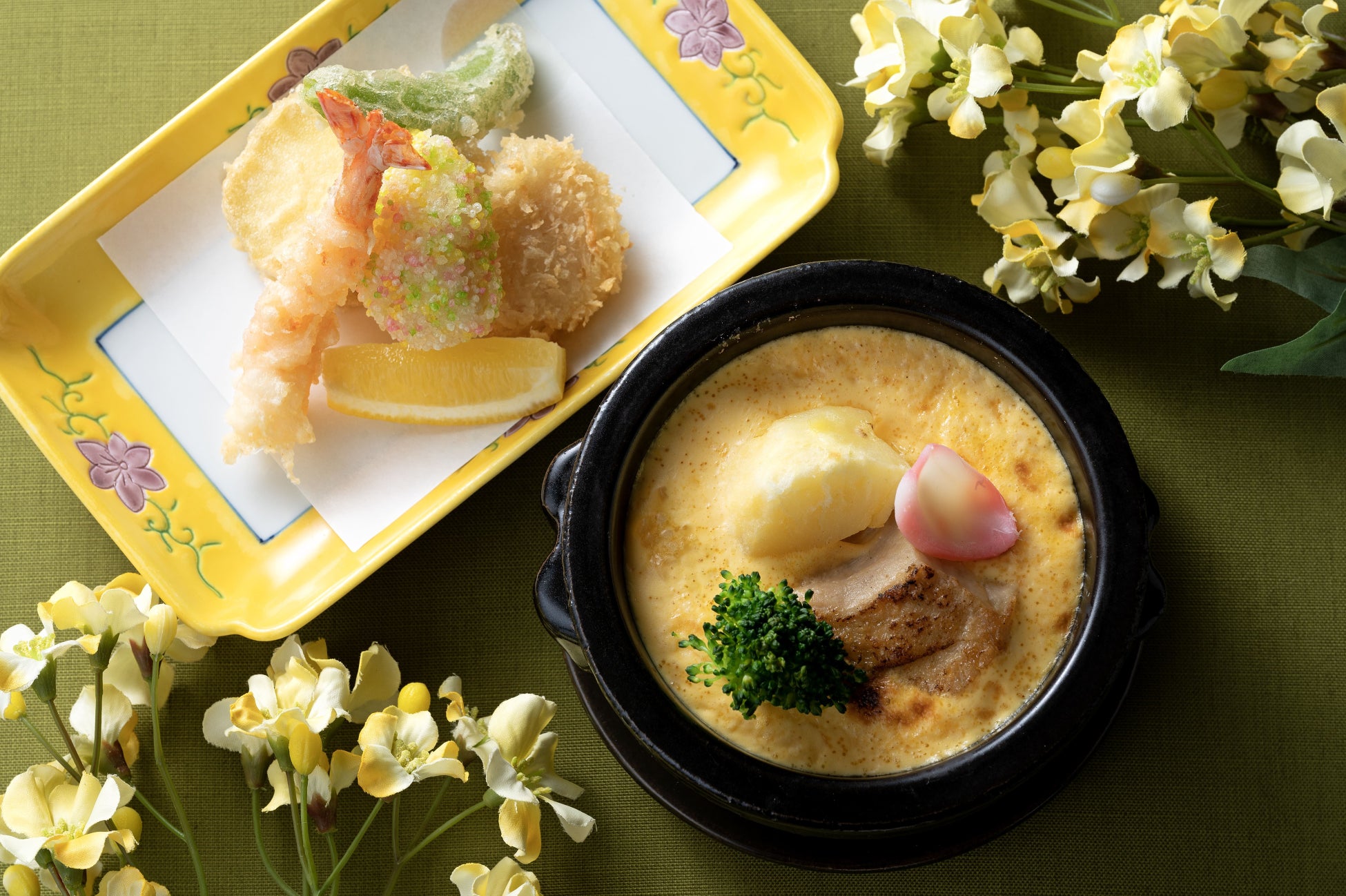 知床どりと北アカリの豆乳クリーム焼や、“ふらの和牛”フィレ肉に百合根を添えて豌豆あんかけでお召し上がりいただける一品をどうぞ。