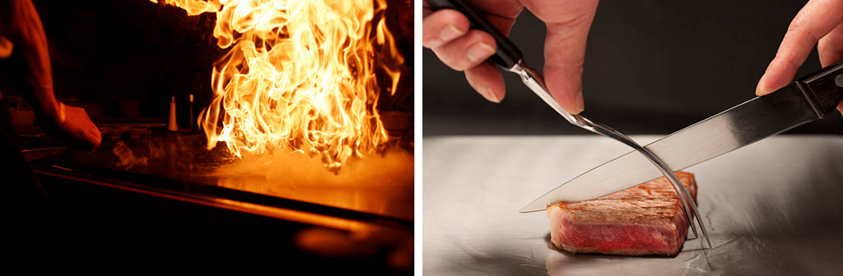 ご宿泊者様のご夕食会場「暖DAN」では、炎を感じるライブキッチンを新設。地元食材をふんだんに使った鉄板焼と天麩羅をメインに据えた五感で味わうディナーをご堪能いただけます。
