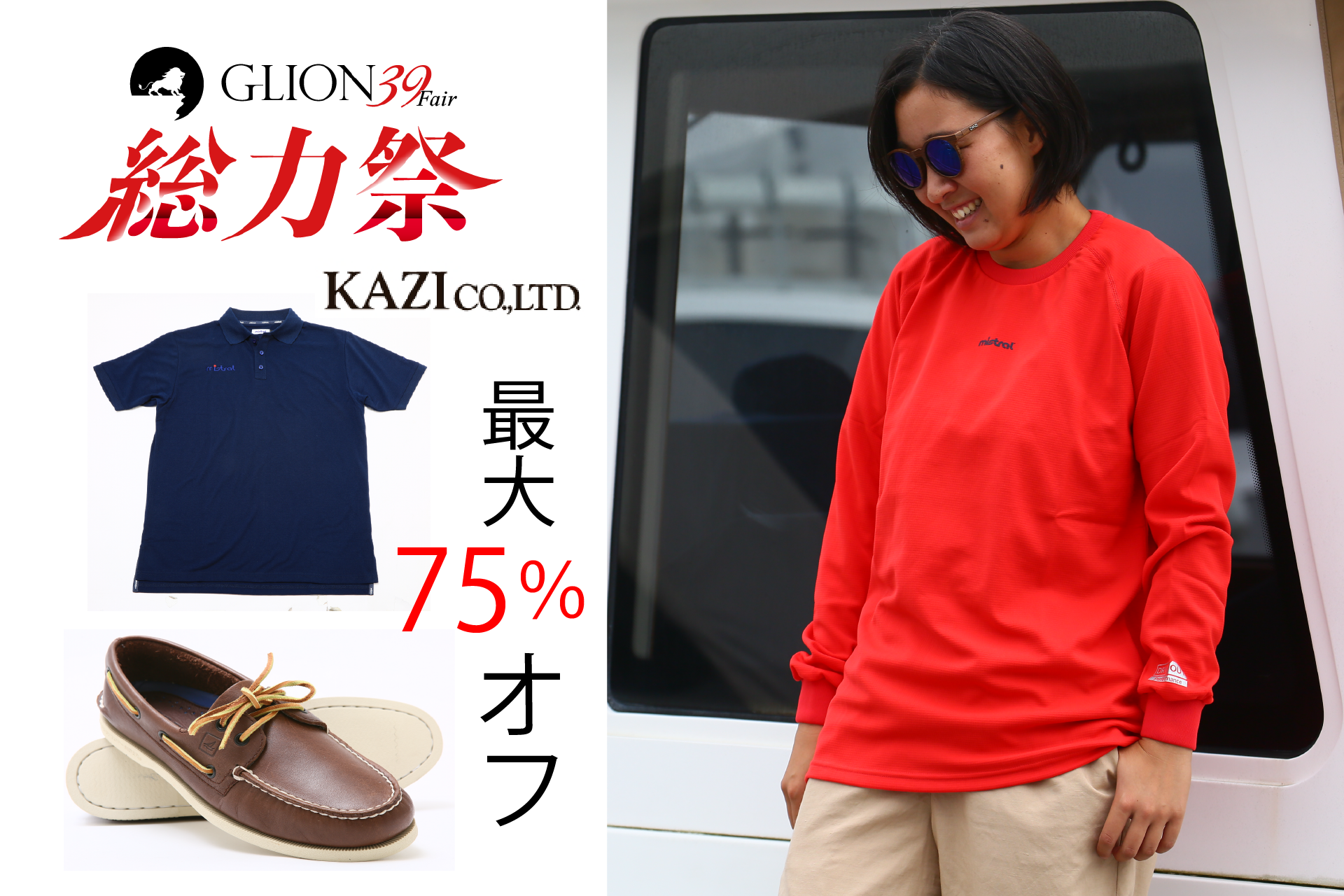 ヨット・モーターボートの雑誌『KAZI』を原点とする舵社は、直営のマリンショップ『KAZIシープラザ』の通販サイトを運営しており、フィッシンググッズからクルージンググッズまで幅広いマリン関連商品を取り扱っております。そんな舵社がGLIONグループ大感謝祭「GLION 39 Fair 総力祭」に合わせ期間限定プライスで最大75%オフの商品をご用意しました!この機会にぜひ公式オンラインショップにお立ち寄りください。