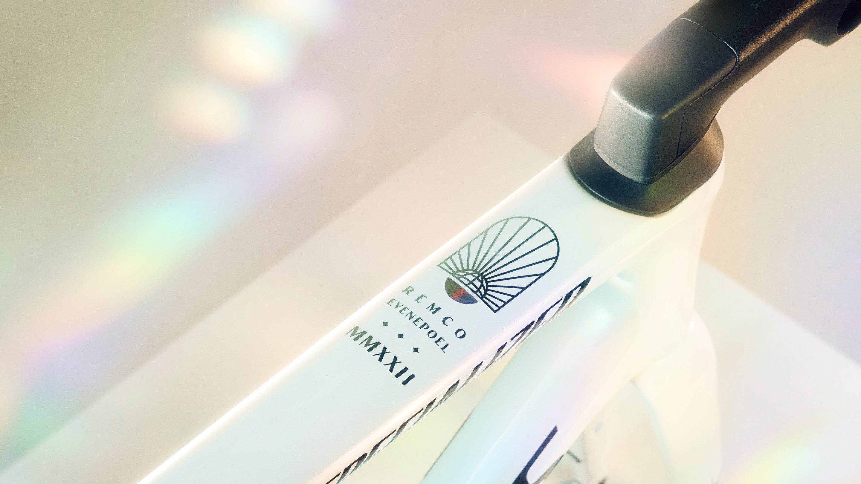 世界チャンピオンを記念したこのフレームは、パール調のベースの上に独特の光を放つペイントが施された美しい仕上げが特長。スペシャライズドのコンセプトデザイナーであるエレナ・エーカーによると、そのデザインには繊細さと超越したクオリティーを持たせ、レムコが「プロ選手」から「世界チャンピオン」へと前進する瞬間を表現。アスリートを単なる競技者ではなく、チャンピオンや生ける伝説とならしめるものに焦点を当てています。