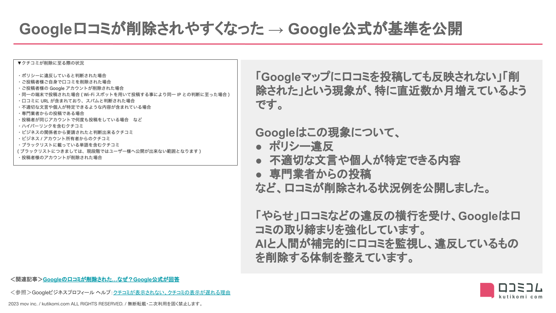 - 6月:Google口コミが削除されやすくなった→Google公式が基準を公開