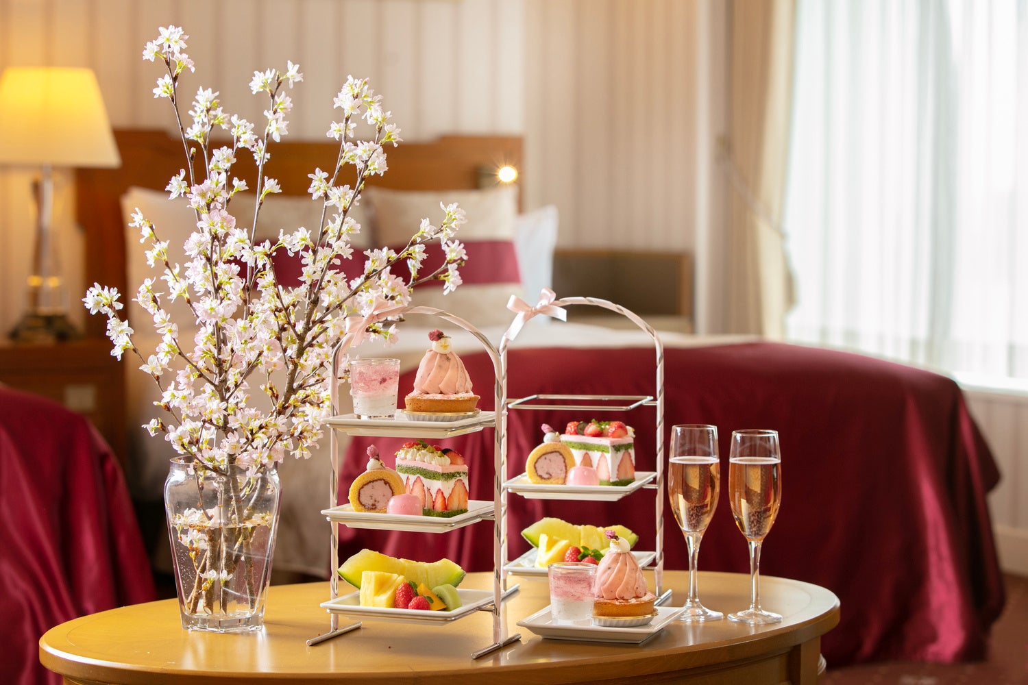 美しく咲いた桜を愛でながら至福のひとときを。客室には、お花見気分が高まる桜のアレンジメントや桜スイーツ、ロゼシャンパンをご用意いたします。一足早く春を満喫できるおこもりステイをお楽しみください。