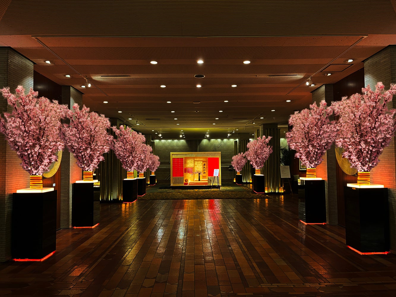 コロナ禍では、思うようにお花見ができない春が続きましたが、今年は思う存分にニッポンの春をお楽しみいただけるよう、ロビーに薄紅色に染まる満開の桜並木を表現してお客さまをお迎えいたします。