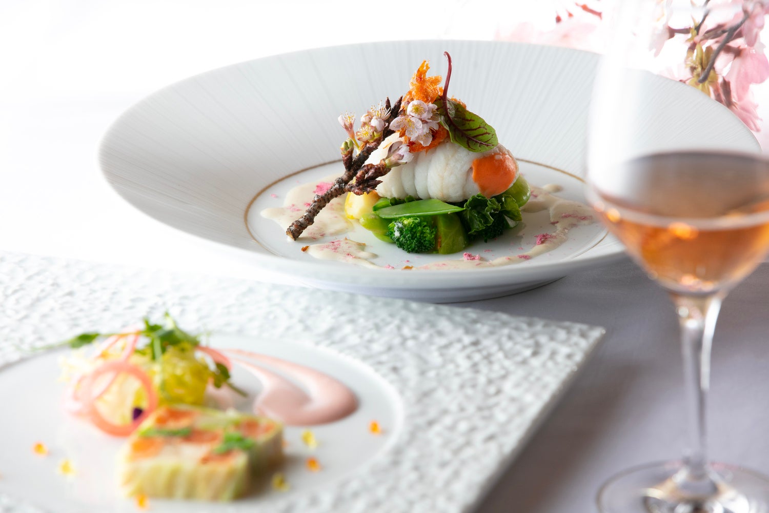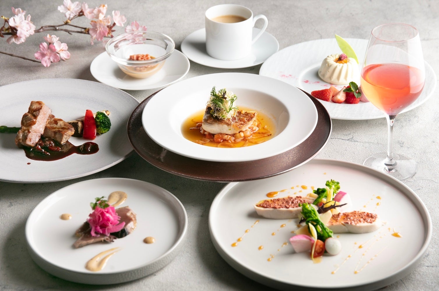 桜鯛のポワレ、さくらポークのロースト、桜デザート