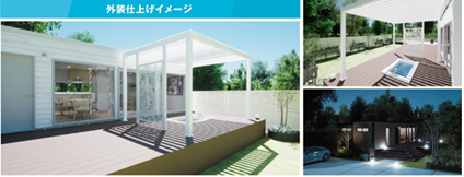 そして、近年注目されているGX(グリーントランスフォーメーション)に対応した新しいライフスタイルと住まいの形も実現しました。GXホームはオフグリッド(送電網に未接続な状態、住宅内で使用する電力を自給自足する)に対応したソーラーパネルの標準装備に加え、タカショーが持つガーデン&エクステリア・テクノロジーによる風・光・水・緑・心をコンセプトとしたパッシブデザインアイテムを標準採用。環境負荷と精神負荷の低い、真に快適な暮らしを実現します。